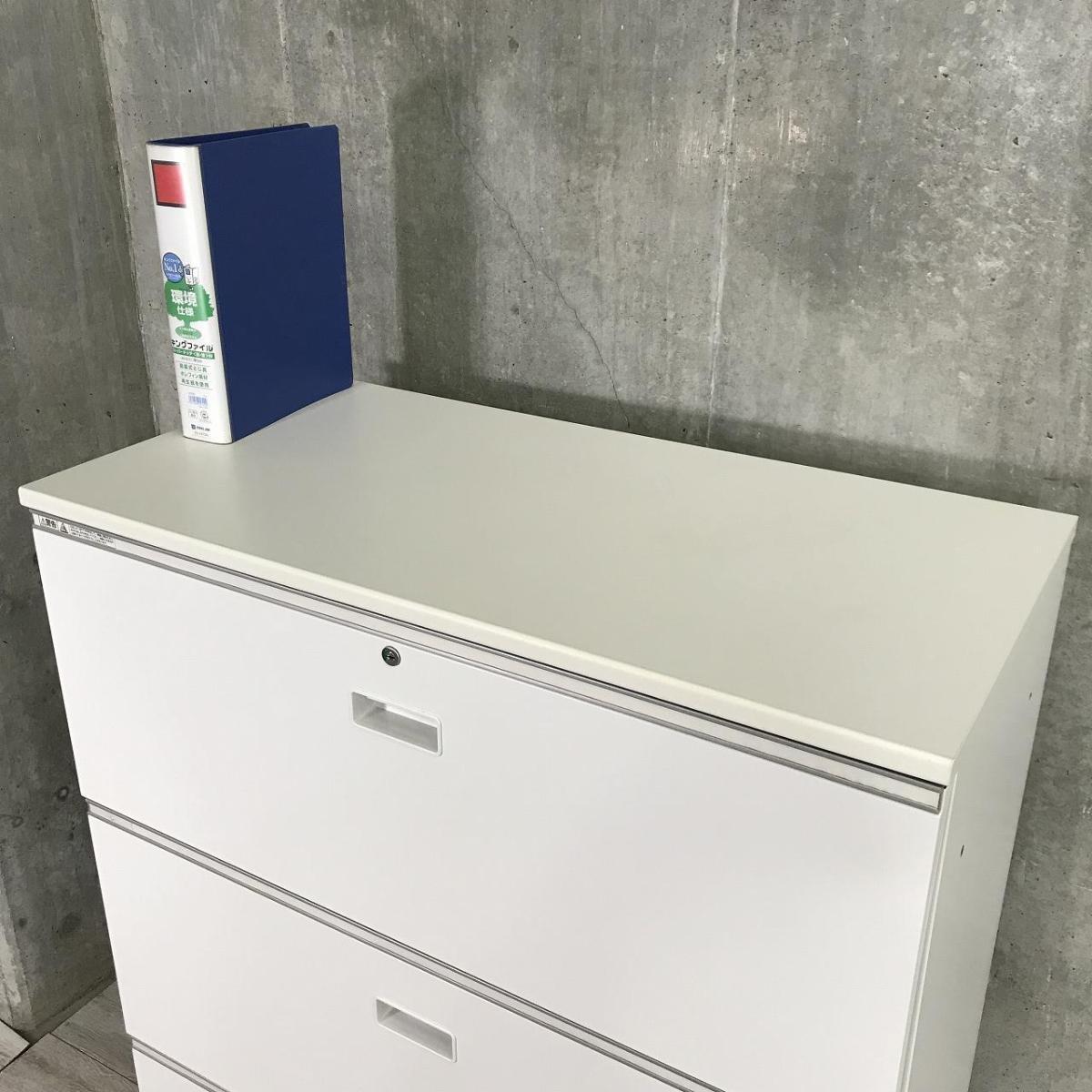 【A4ファイルも沢山収納可能!ホワイトカラーの人気シリーズ3段ラテラル書庫!】/オススメ(おすすめ) /人気商品【弊社使用欄:A01013834】3段ラテラル書庫/ローキャビネット/天板付き/ホワイト/シリンダー錠/ITOKI/THIN LINE■イトーキ/シンライン※取っ手部分日焼あり