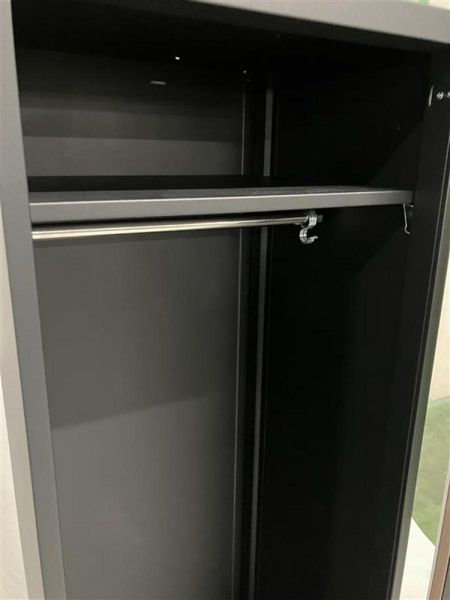 中は、更衣ロッカー同様、ハンガー掛けと棚板が一枚付いており収納力も抜群です。