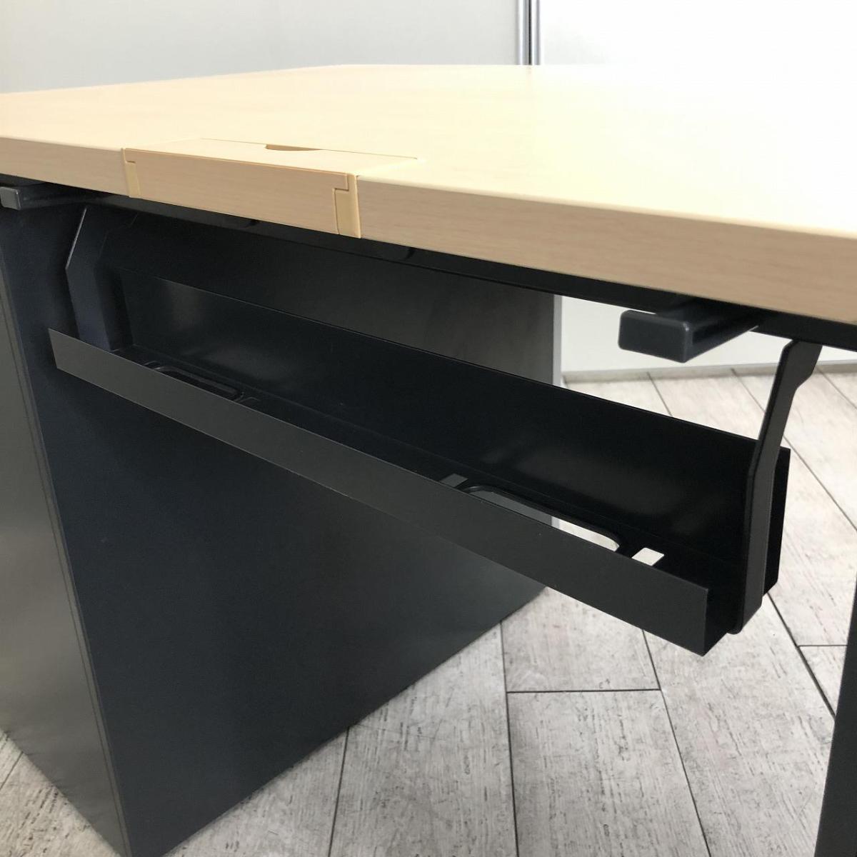 【在庫入替セール】【スタイリッシュなデザインの両袖机!右側が引き出し式の棚のタイプ!】■コクヨ製 デルフィ 両袖デスク W1400mm ■左袖:2段 右袖:引き出し式棚 ■天板:ナチュラル 本体:シルバー&ブラック 【弊社使用欄:A00999307】在庫がある店舗一覧