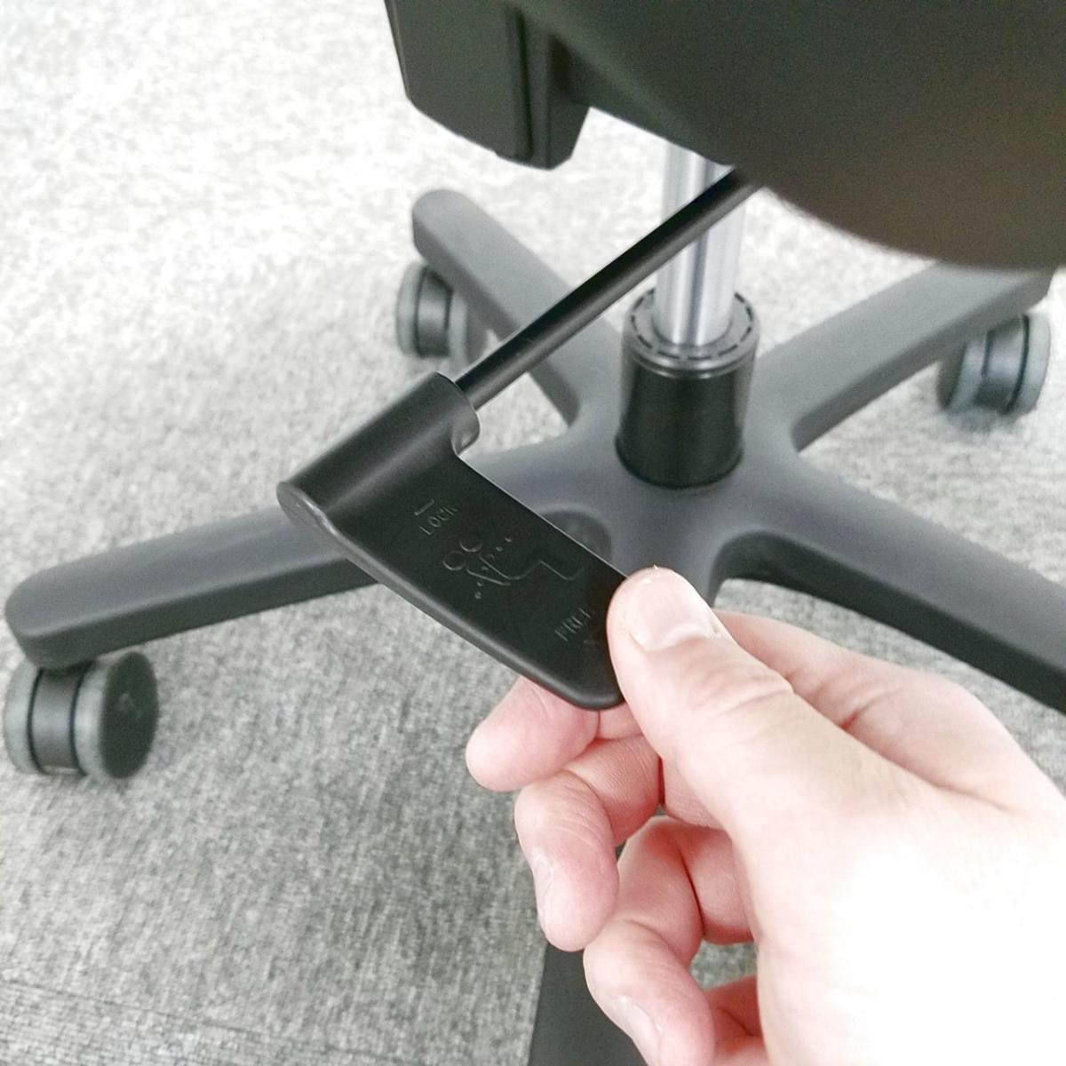 理想の姿勢 - ロッキング時、ヒップチルト機構でシート全体が前方にスライドし、腰部だけが前にずれないので、適正な姿勢がキープできます。