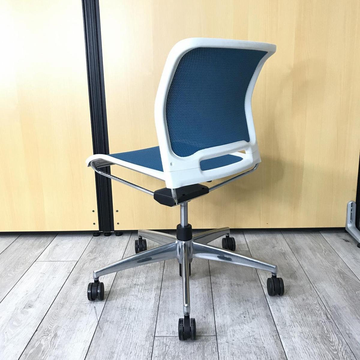 【背座3Dメッシュ形状!快適な座り心地!】■コクヨ(KOKUYO)製 カラベル(caravel) ミーティングチェア 肘無し ■回転脚タイプ ■背/座面メッシュ ■ブルー- つくば店