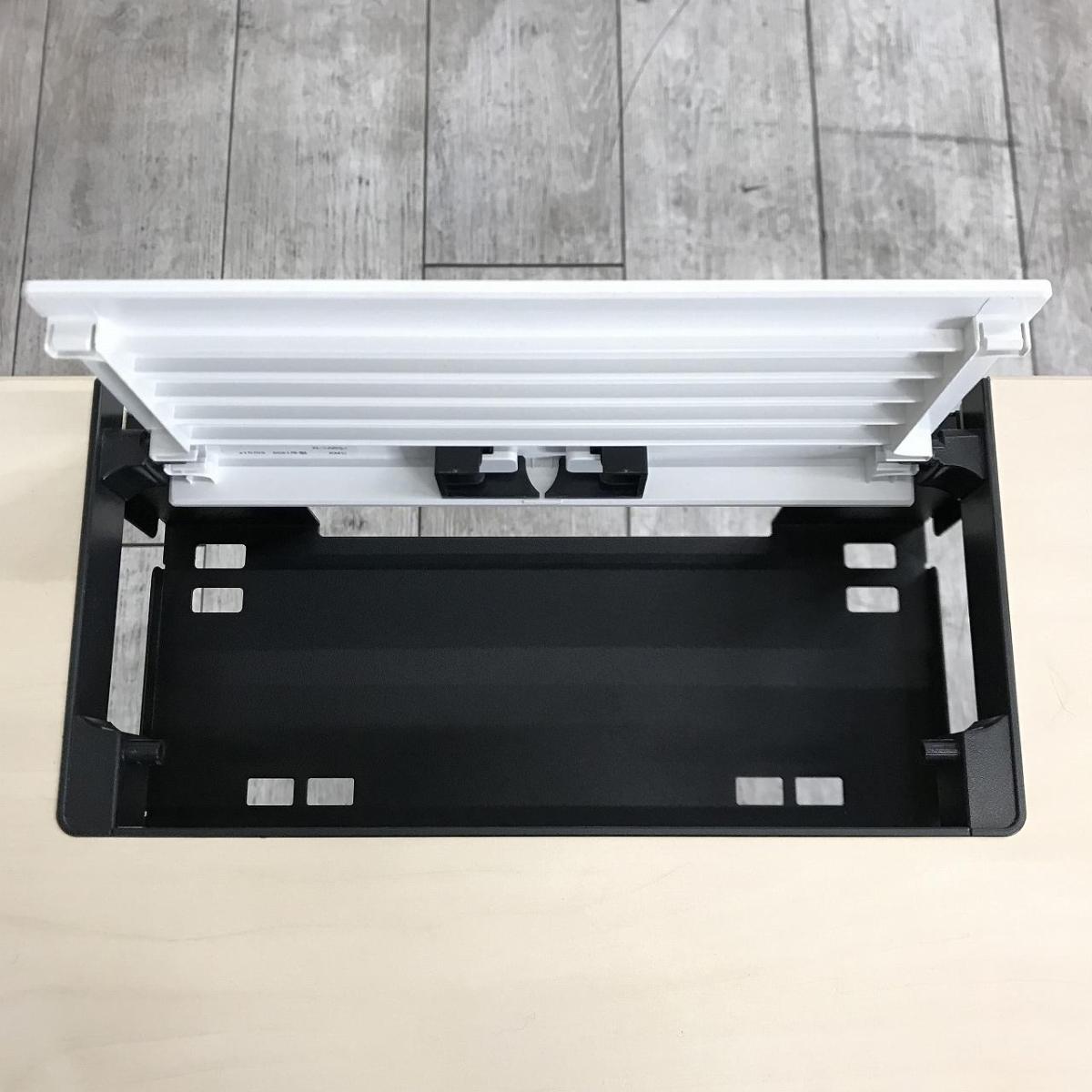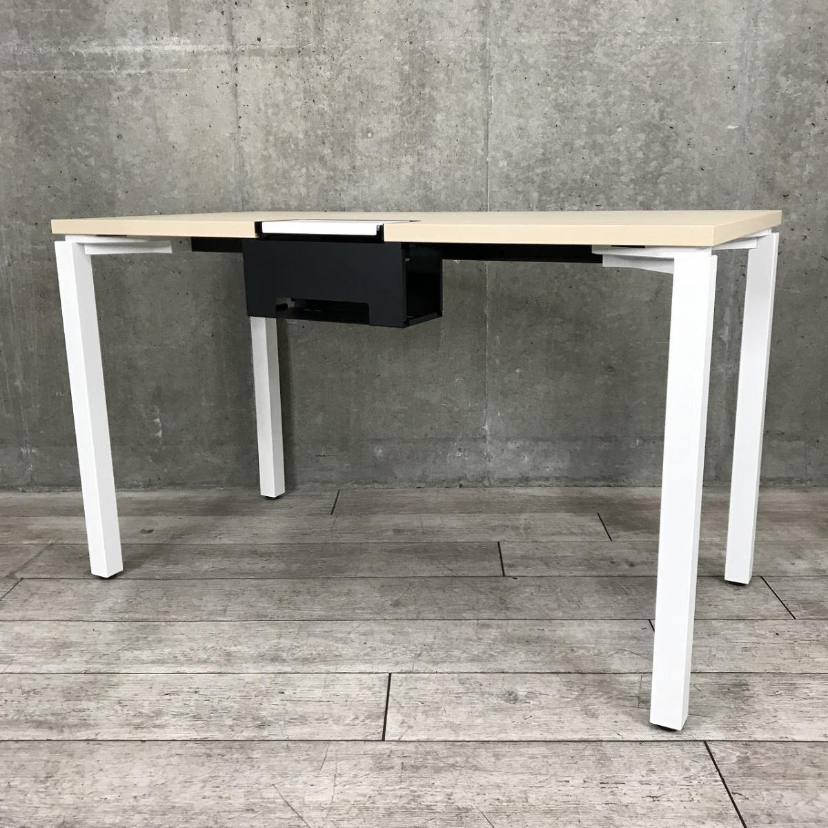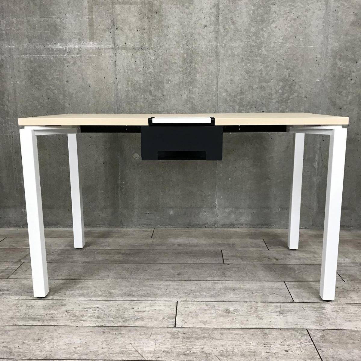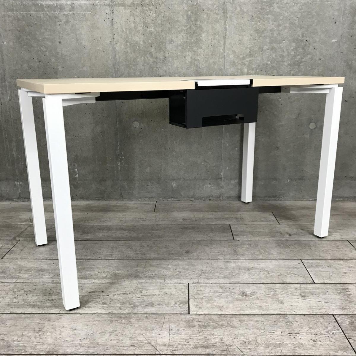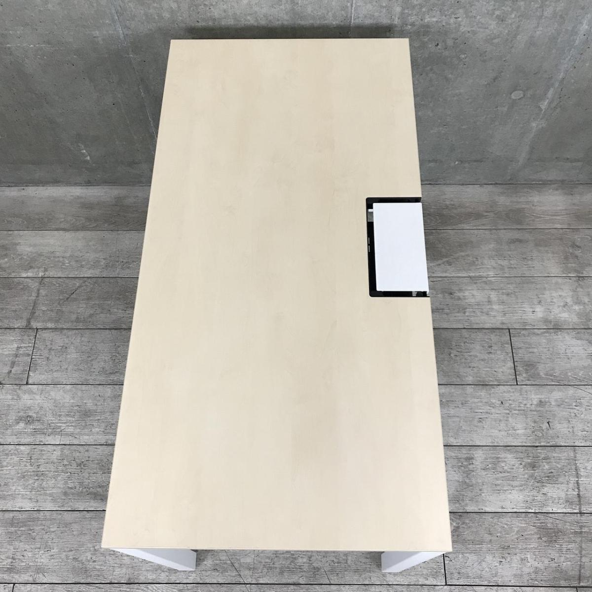 【スタイリッシュなミーティングテーブル!オフィスデスクとしてもお使いいただけます!】■コクヨ(KOKUYO) ワークフィットシリーズ ミーティング 平机 W1200×D600 ■配線口 ■天板:木目ナチュラル/脚:ホワイト- なんば日本橋店