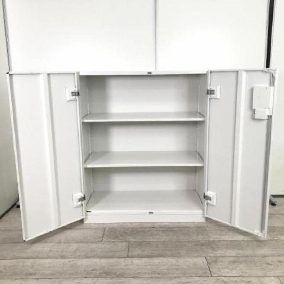 【在庫入替セール品!】【フラットで美しい!】■イトーキ製 (ITOKI) esシリーズ (エスキャビネット) ■両開き ローキャビネット 下置き用 ■高さ 1100mm ■ホワイト ■シリンダー錠 ■ベース付き- 池袋店