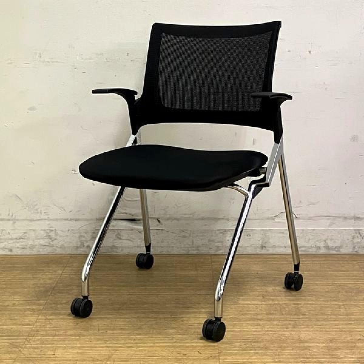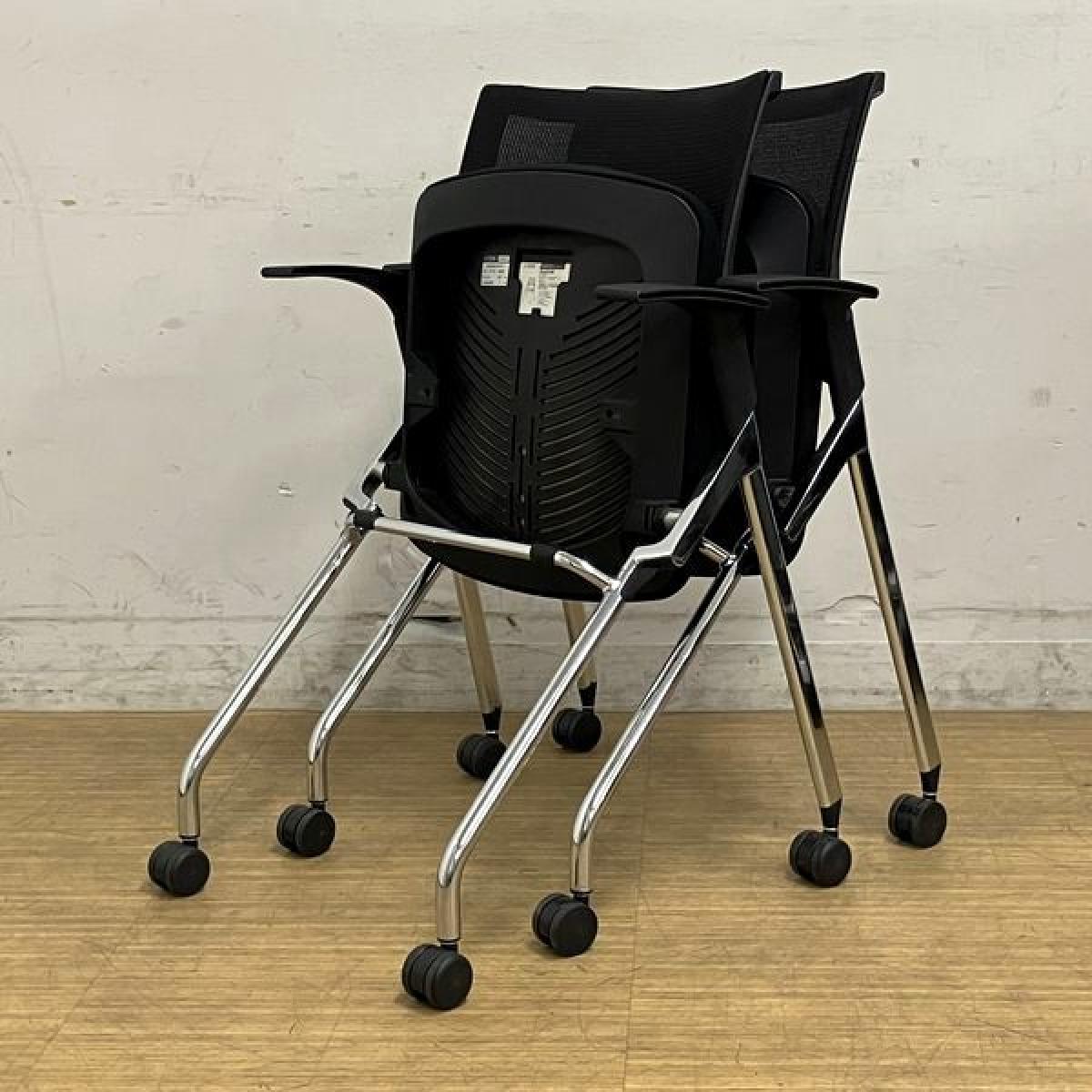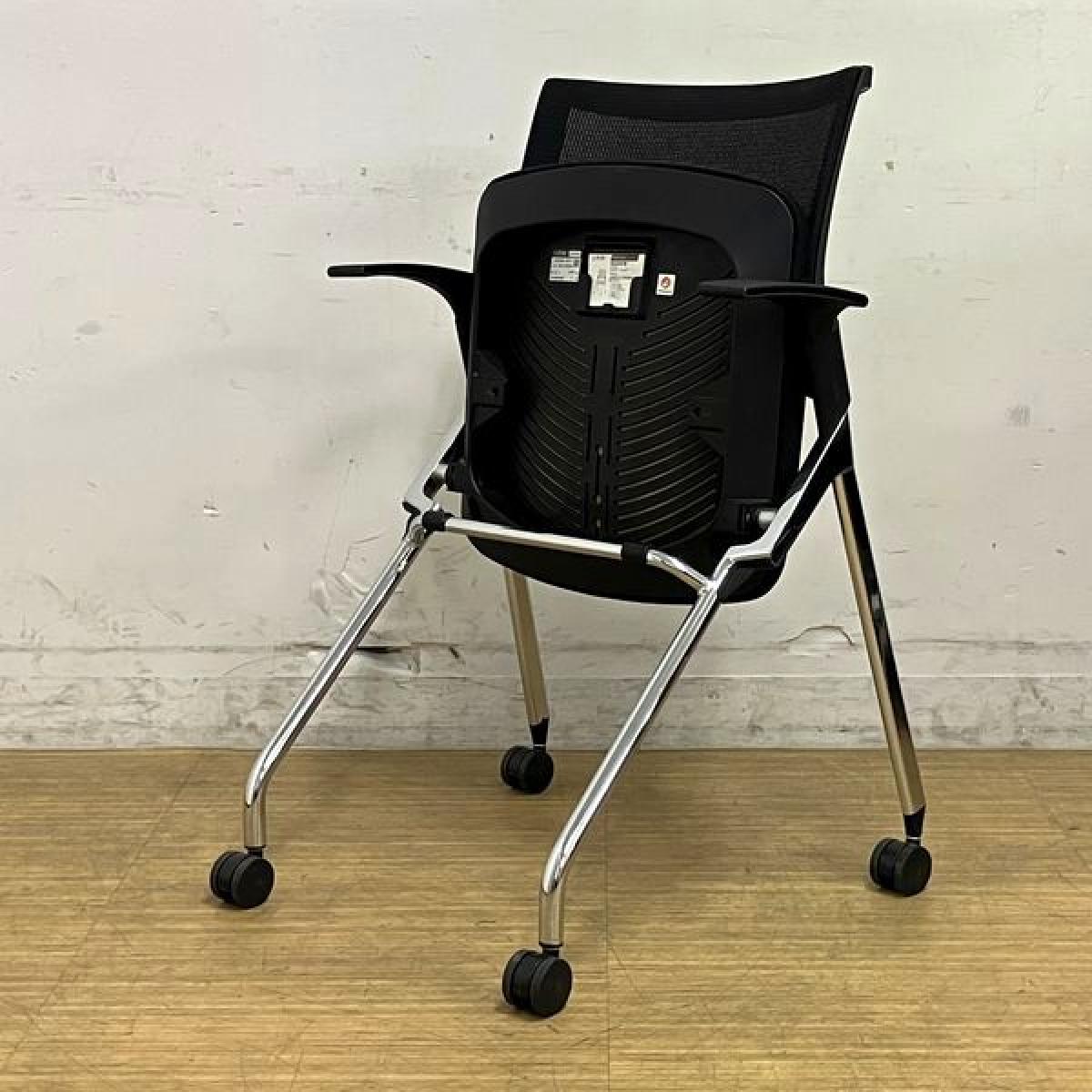 【ロット入荷】イトーキ モノン(Monon) ネスティングチェア メッシュバック 肘付き ブラック×クロームメッキ- 名古屋千種店