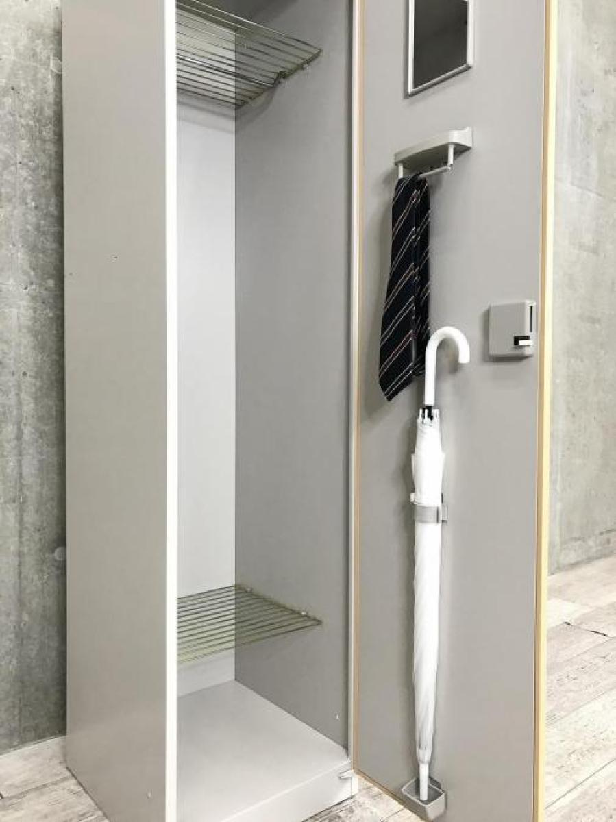 - 完備鏡、ネクタイ掛け、傘立て、網棚、フック等が全て完備されている。