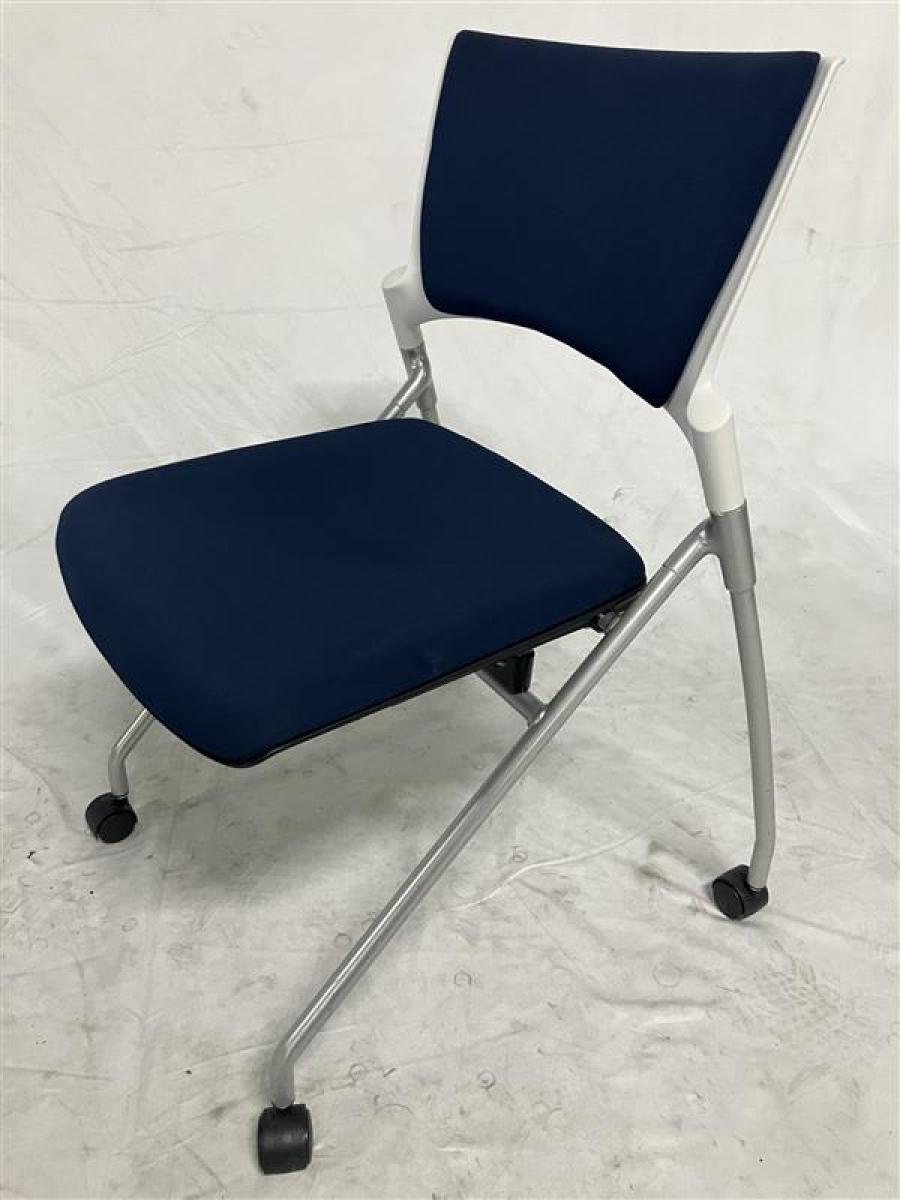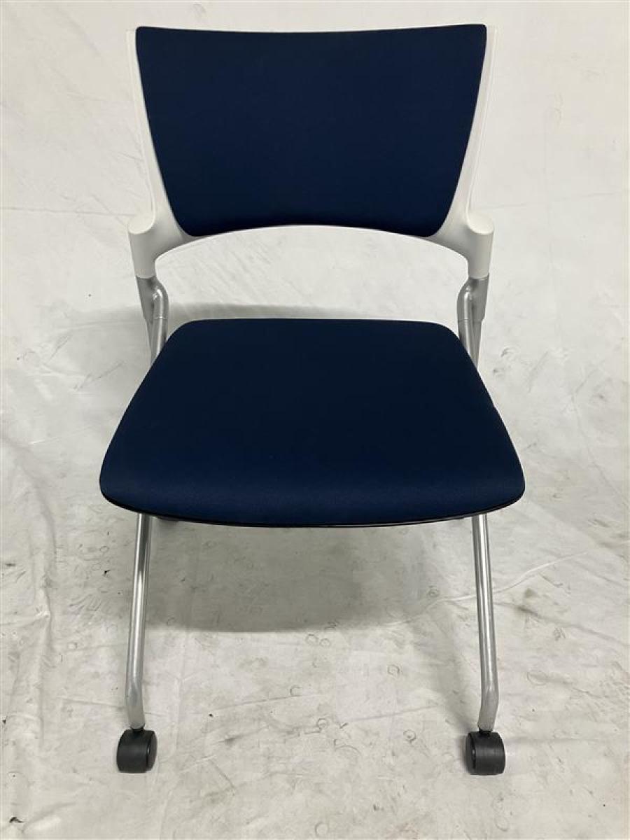 【残り3脚価格】イトーキ(ITOKI)/マノスチェア(MANOSS) スタッキングタイプ ネイビーブルー/ホワイトフレーム ※CS在庫- 名古屋千種店