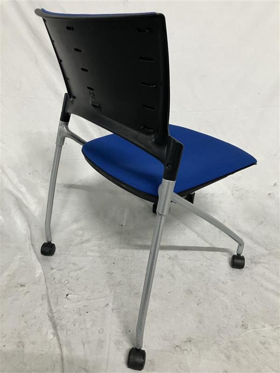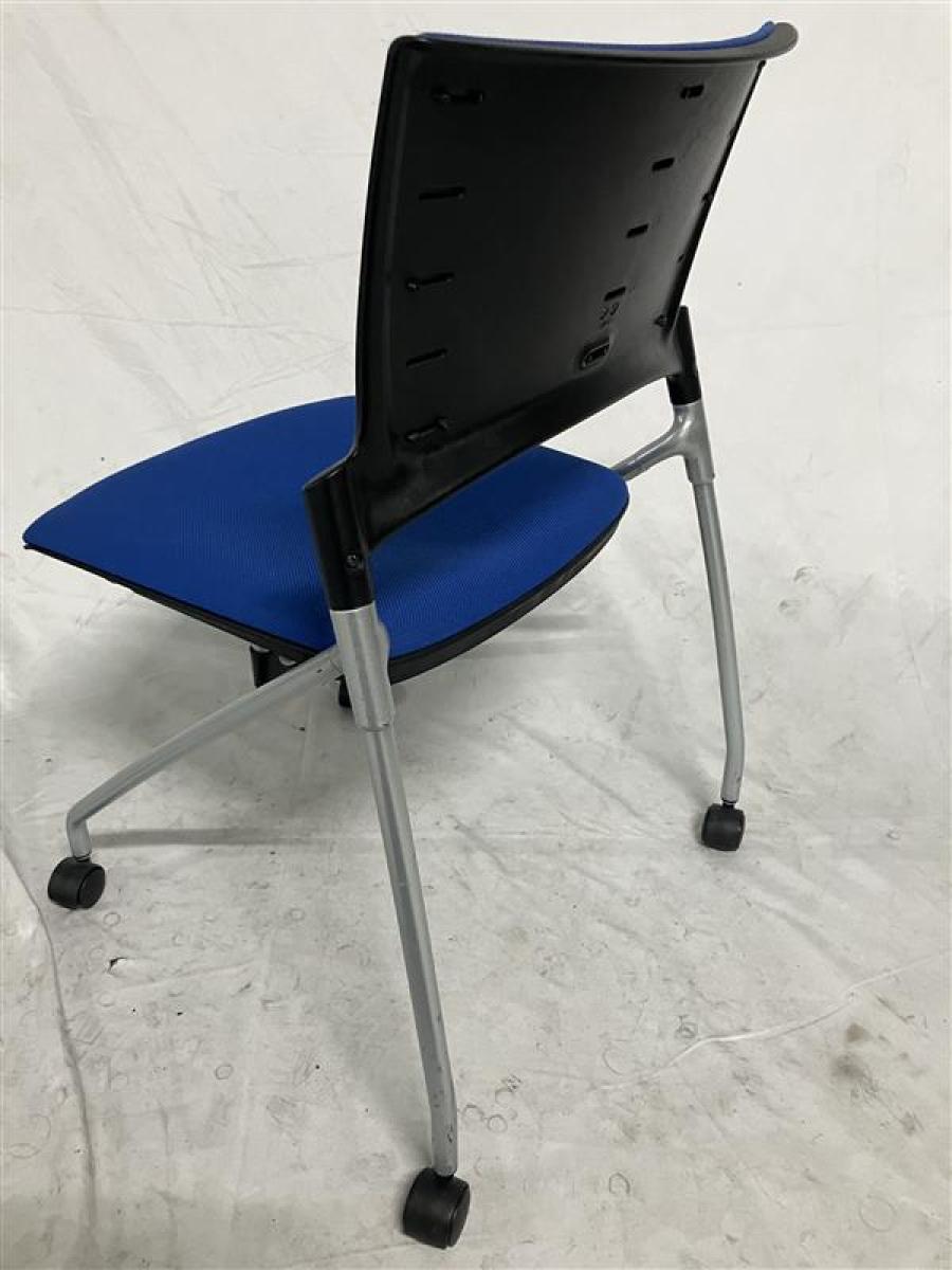 【定価6万円】【ソフトベンディングシェルが背を優しく受け止める!】■イトーキ(ITOKI) マノスチェア(MANOSS) 肘無し スタッキングチェア ミーティングチェア ■背パッド付 ■キャスター脚 ■ブルー
