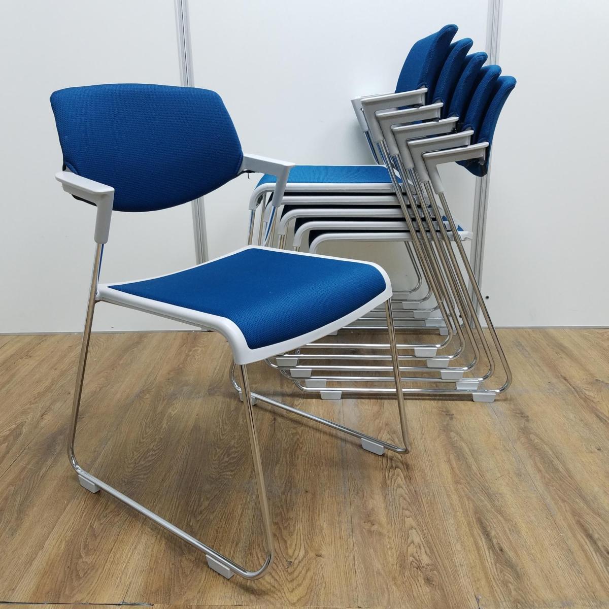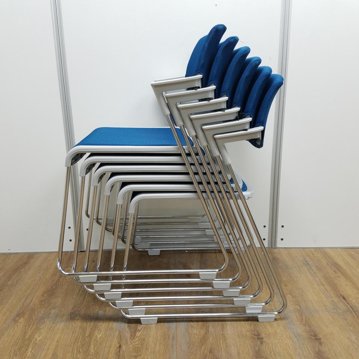 【6脚セット!!】コクヨ製 サティオシリーズ ブルシアンブルー スタック ミーティング 会議 チェア 収納 スタッキングチェア!!- 京都東寺店