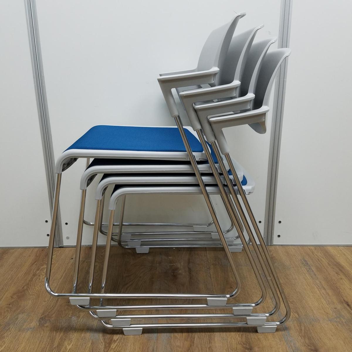 【4脚セット!!】コクヨ製 サティオシリーズ ブルシアンブルー 背もたれ樹脂 スタック ミーティング 会議 チェア 収納 スタッキングチェア!!- 京都東寺店