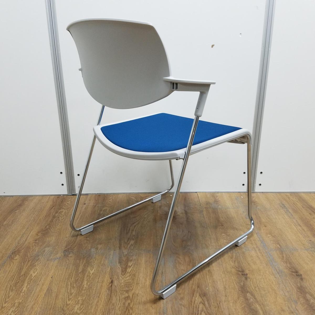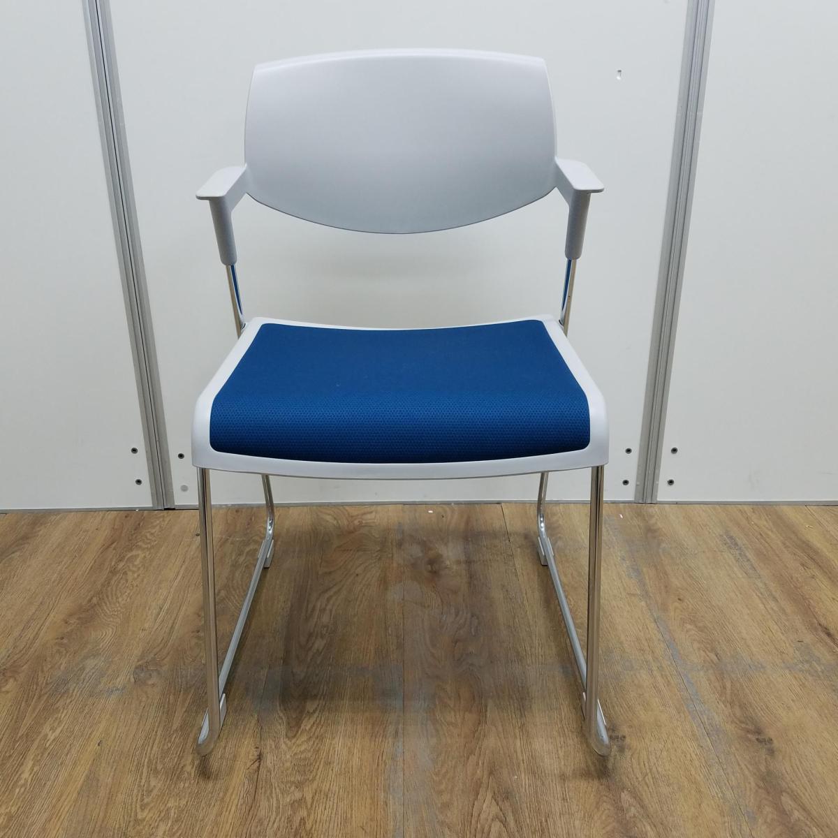 【肘一体型のシェルが身体への負担を軽減!】■コクヨ(KOKUYO)製 サティオ(Satio)シリーズ 肘付 スタッキングチェア 会議用 ■背カバータイプ ■ブルー×ブラックシェル