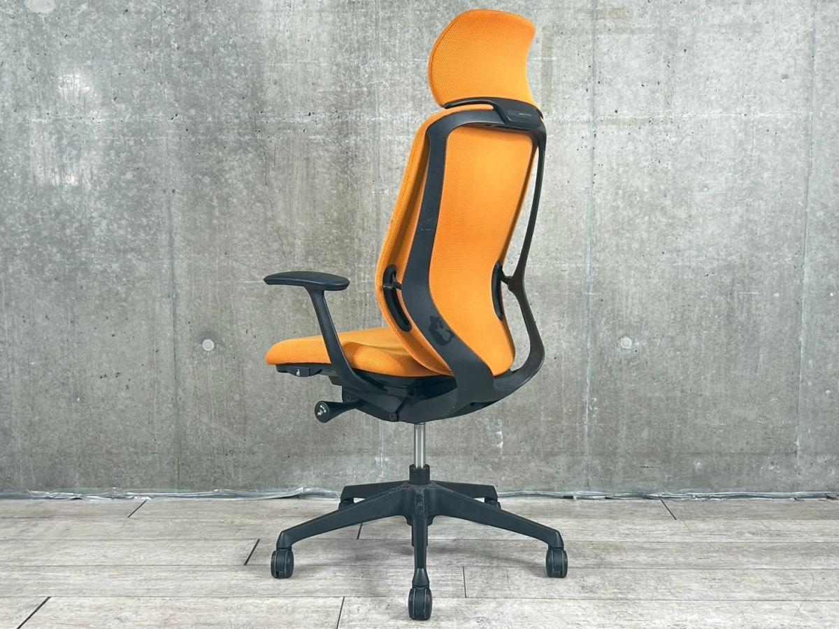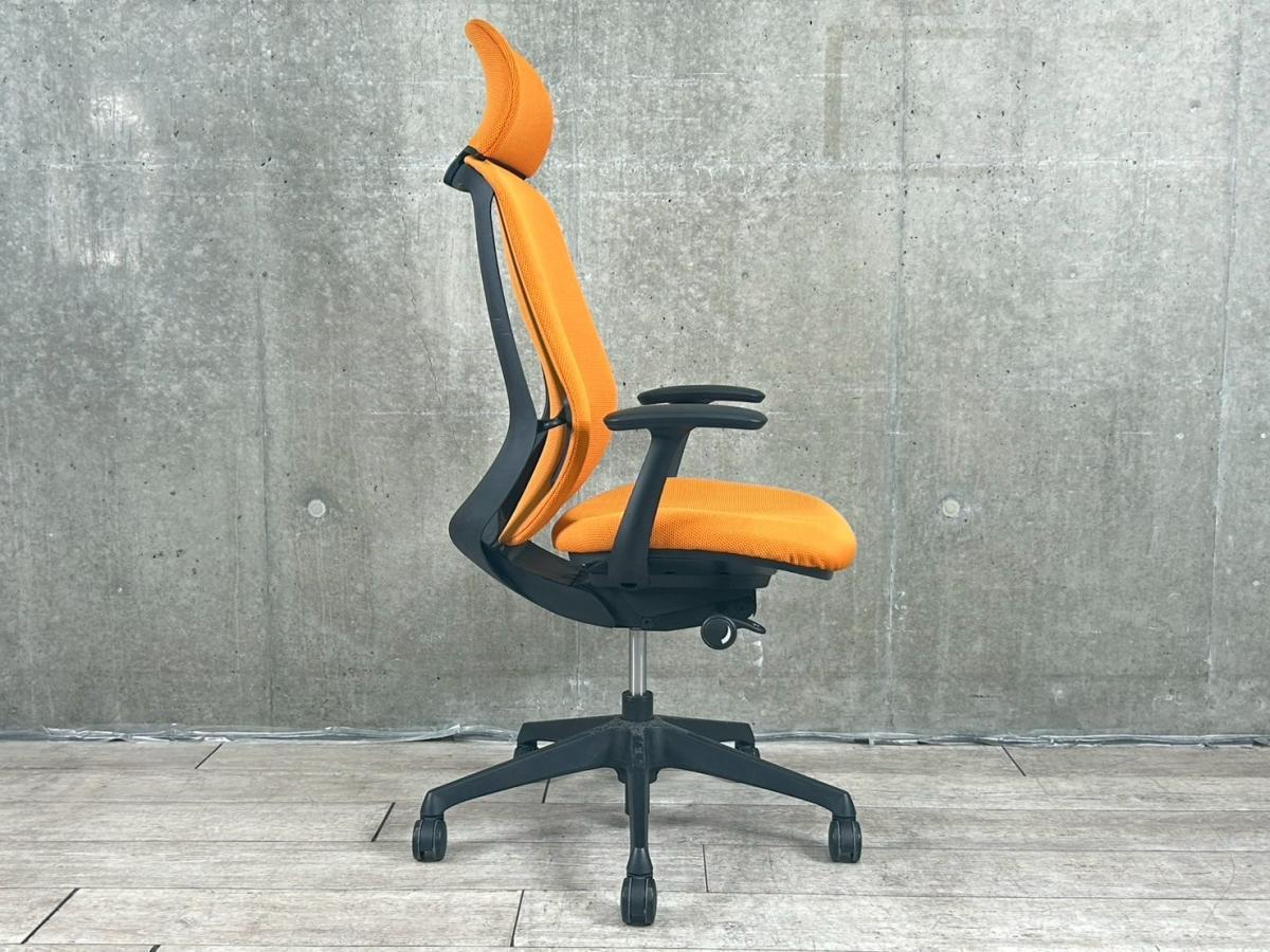 現品限り!新感覚のオフィスシーティング!前傾機能付きで長時間のデスクワークにもおすすめの逸品! ■オカムラ/シルフィー(Sylphy)/オレンジ ブラックフレーム エクストラハイバック 固定肘 ヘッドレスト付きサーキュラーバリューCO2削減量の算出について
