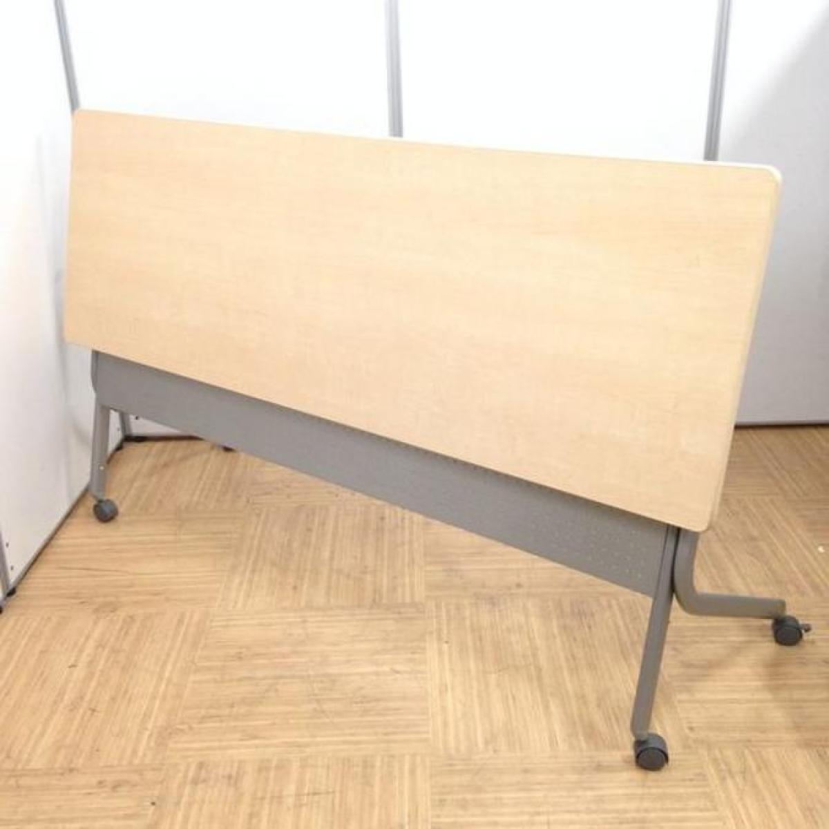 キャスター付で移動がラクラク!横に重ねて収納が天板フラップ式テーブル! ■ウチダ/SP型/ナチュラル サイドスタックテーブル W1800×D600×H700mm 【平行スタックテーブル】【折り畳みテーブル!】- 千葉店