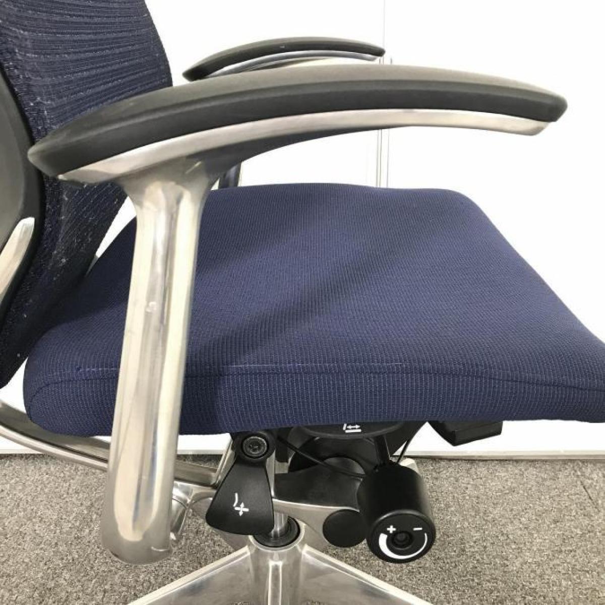 【座面が大人気!国産メッシュチェアの代表格!】■オカムラ(okamura)製 バロン(Baron)チェア ローバック 肘付き ■背面メッシュ ■固定肘 ■色:ダークブルー ■ハンガー付き
