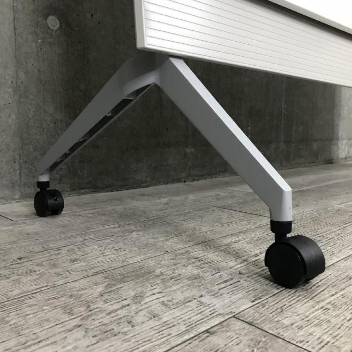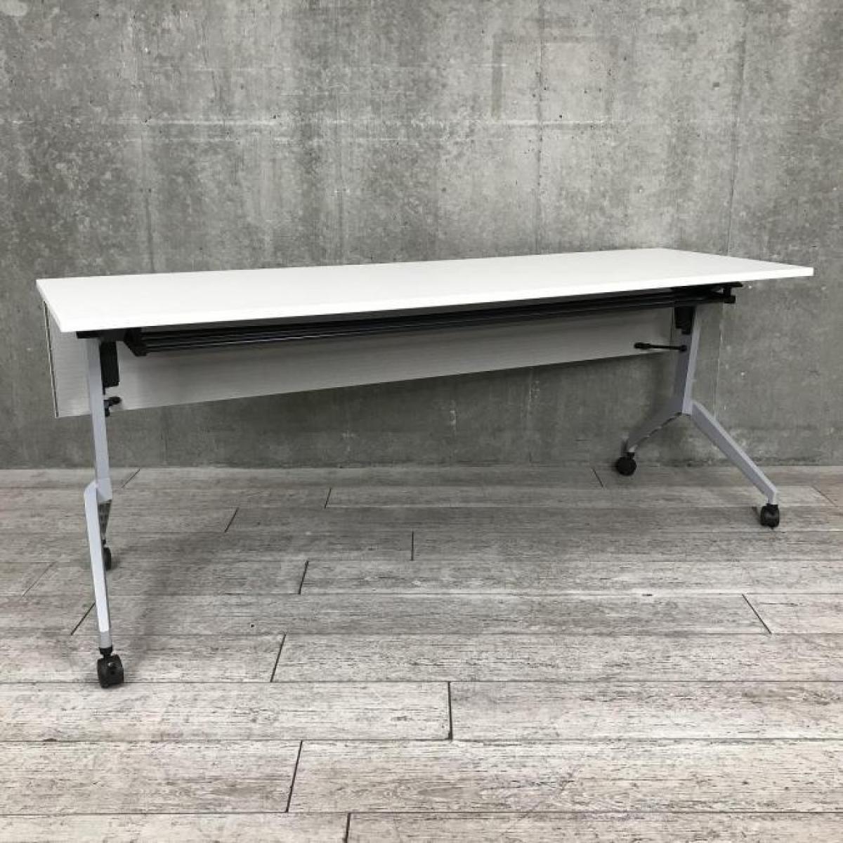 【在庫入れ替えSALE】【3人用での使用にオススメ】■内田洋行製 パラグラフ スタックテーブル 横幅1800mm奥行600mm ■ホワイト ■キャスター付 幕板付き【天板跳ね上げ式でコンパクトに収納】【キャスター付きで移動も楽々!】@tikusa-kamiya3- 岐阜店