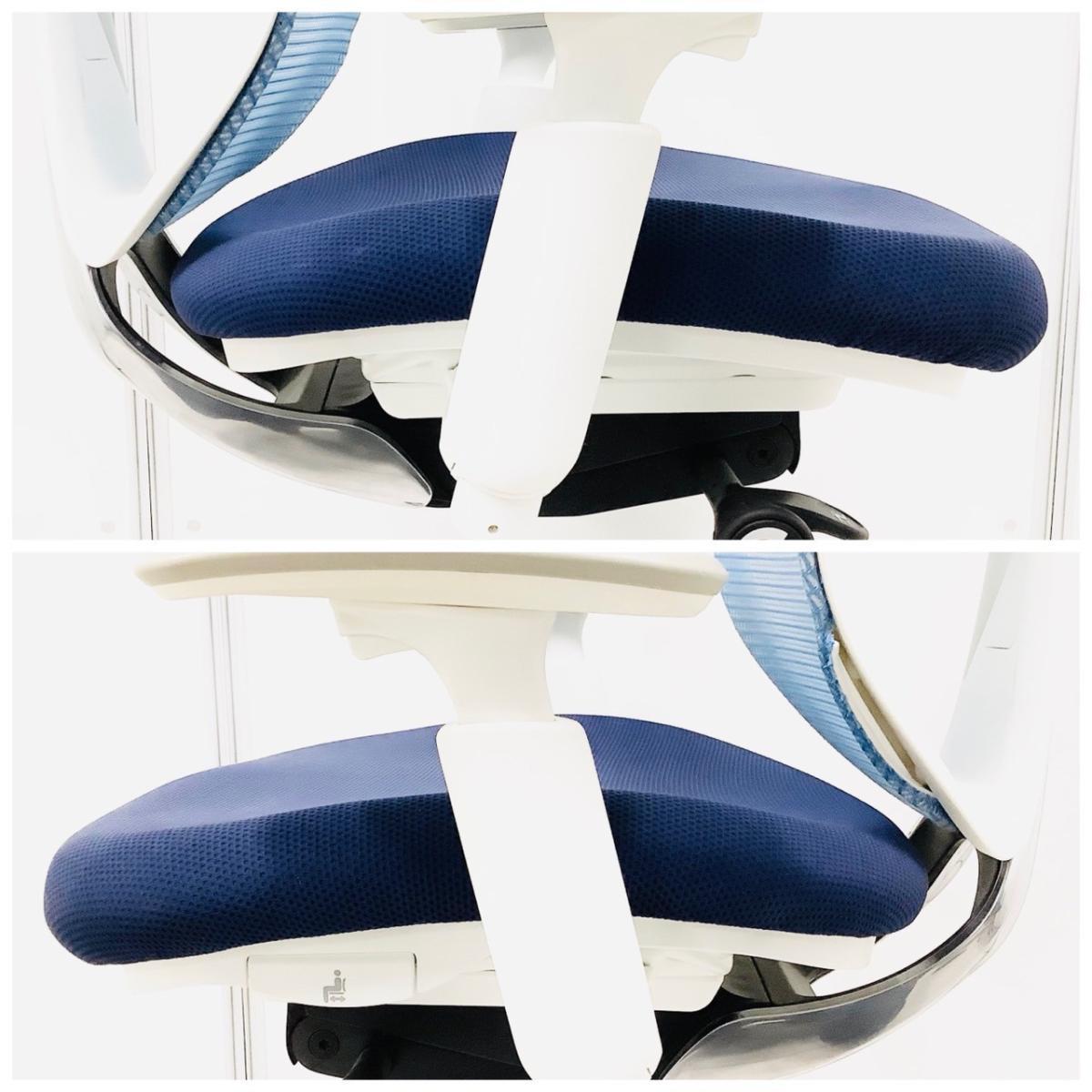 前傾チルト付きで作業効率アップ!長時間のデスクワークでも快適なオカムラ製の高級シリーズ! ■オカムラ/Sabrina(サブリナ)/アクアブルー×ダークブルー×ホワイトシェル ■背面メッシュ ■可動肘- 立川・八王子店