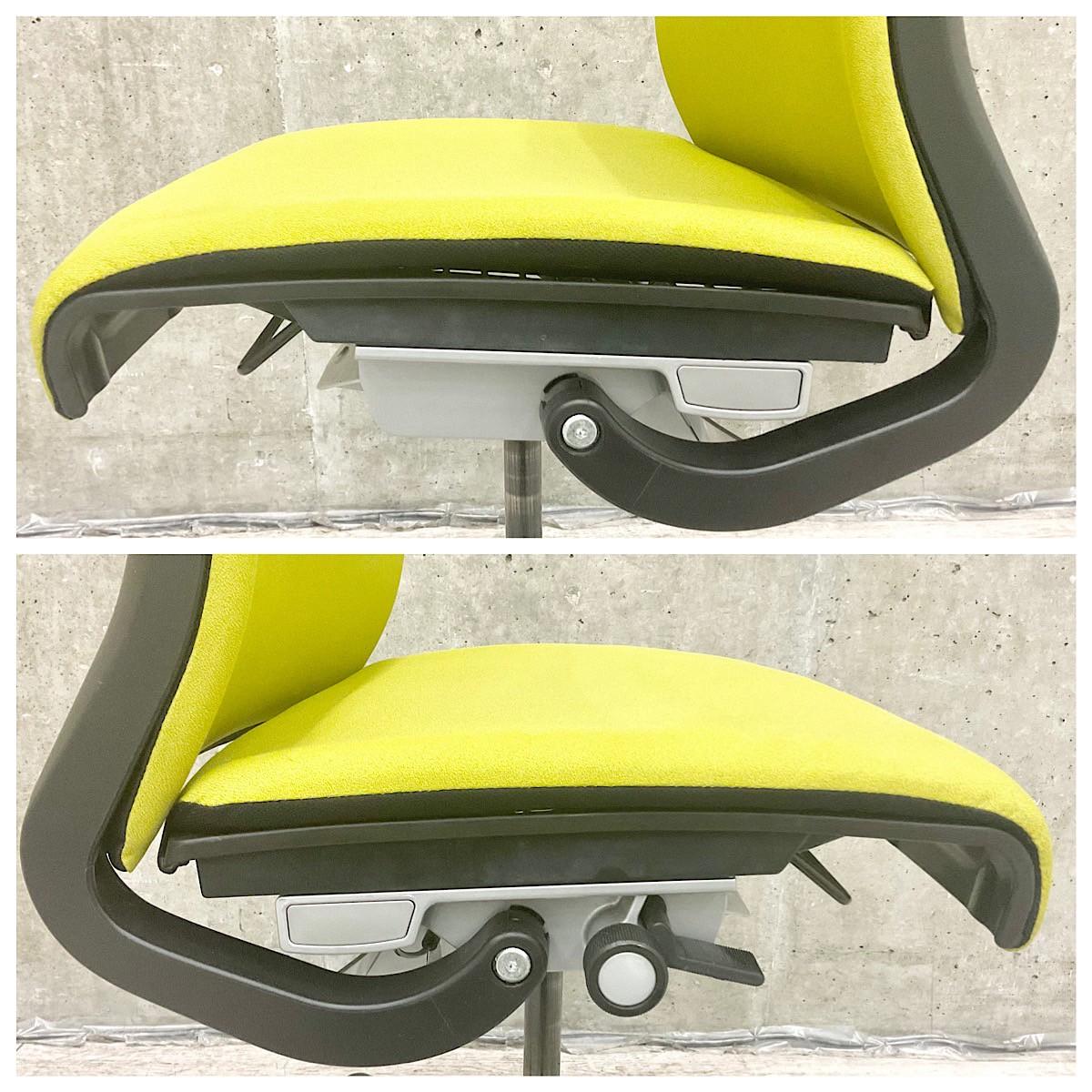快適な座り心地に不可欠な調節機能である、上下昇降、座面の奥行き調整、リクライニングなどを備えており、操作もわかりやすく好評です。 特に、座面の奥行きは、座面下の左右に通った細いバーで調整でき、座ったままで軽やかに滑るように調整が可能です。 価格面では、新品では高めですが、中古は流通も多く、定価の3割前後の価格で高級チェアの座り心地を手に入れることができます!