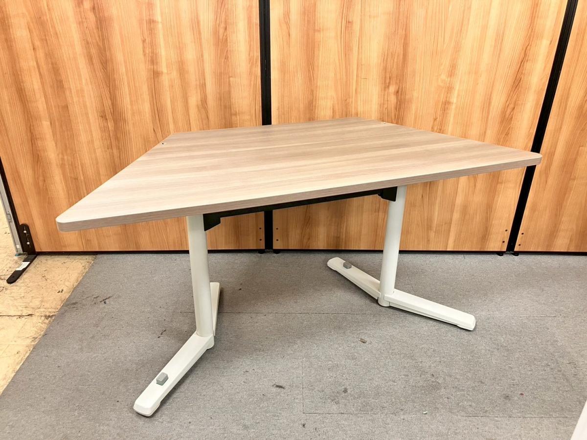【在庫入替セール】オカムラ ライブス フラップタイプテーブル 台形 天板:プライズウッドミディアム 脚:ホワイト 折り畳み可能 会議室用やミーティング用におすすめ【AD】- 足立・葛飾店