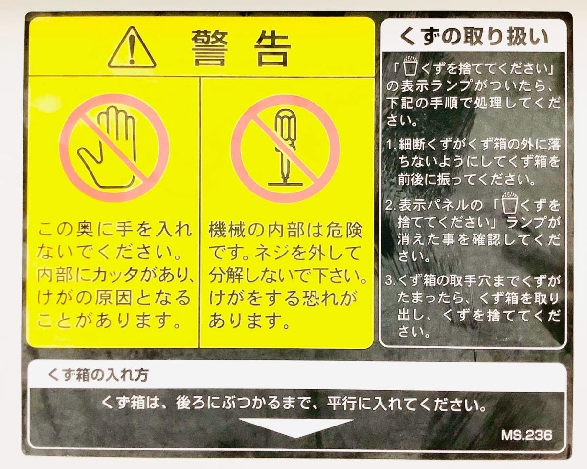 | 屑収容量 | 約76リットル 約2,500枚 |