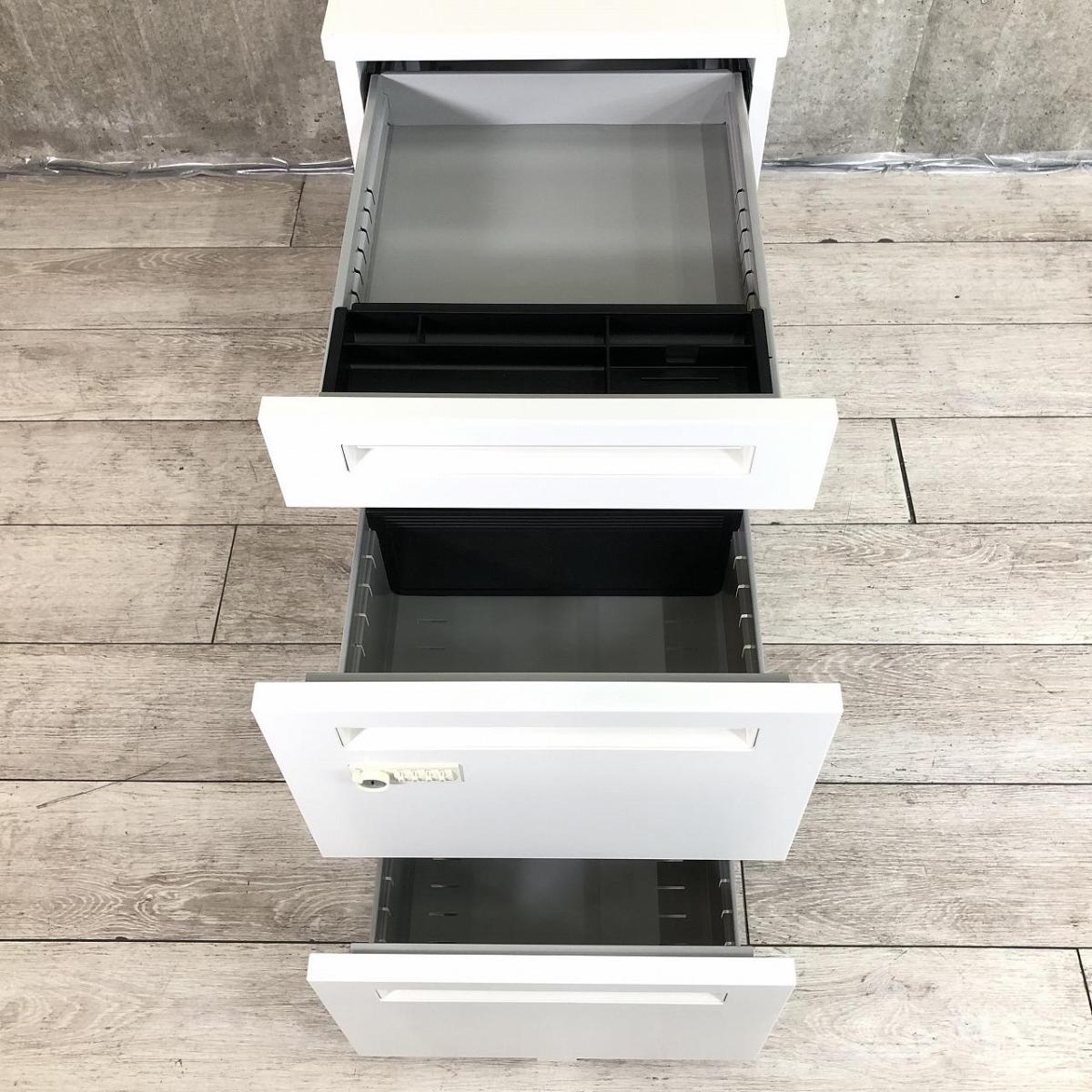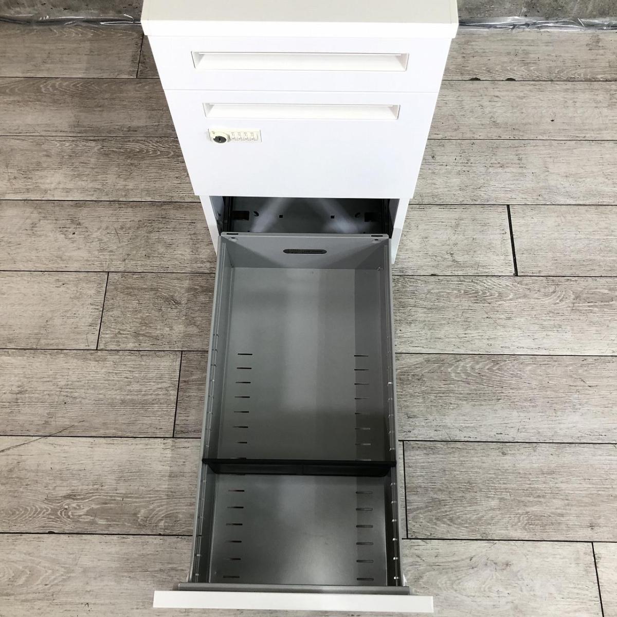 ☆便利に使えるダイヤル錠タイプ!鍵の持ち歩き不要です!【ワークスペース&収納量アップにオススメ!】■ウチダ スカエナシリーズ 3段脇机 ホワイト【デスクサイドキャビネット】【UCHIDA SCAENA】- 川崎店