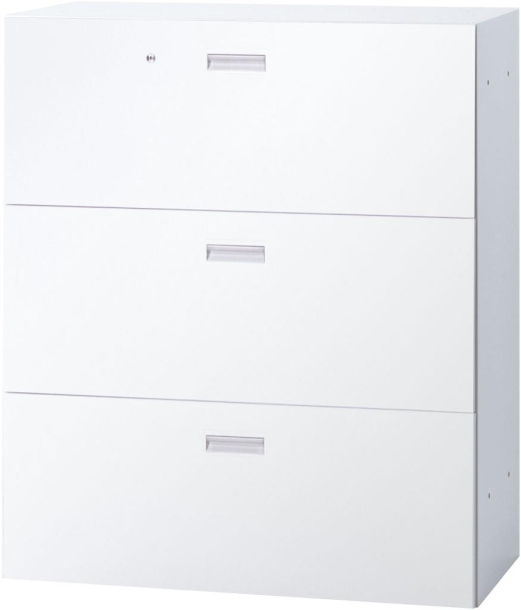 【7月上旬入荷予定!】【定番の引き出しタイプ(ラテラル)】■ウチダ(UCHIDA)製 BEストレージ ローキャビネット 3段ラテラル書庫 ベース付き ■本体:ホワイト