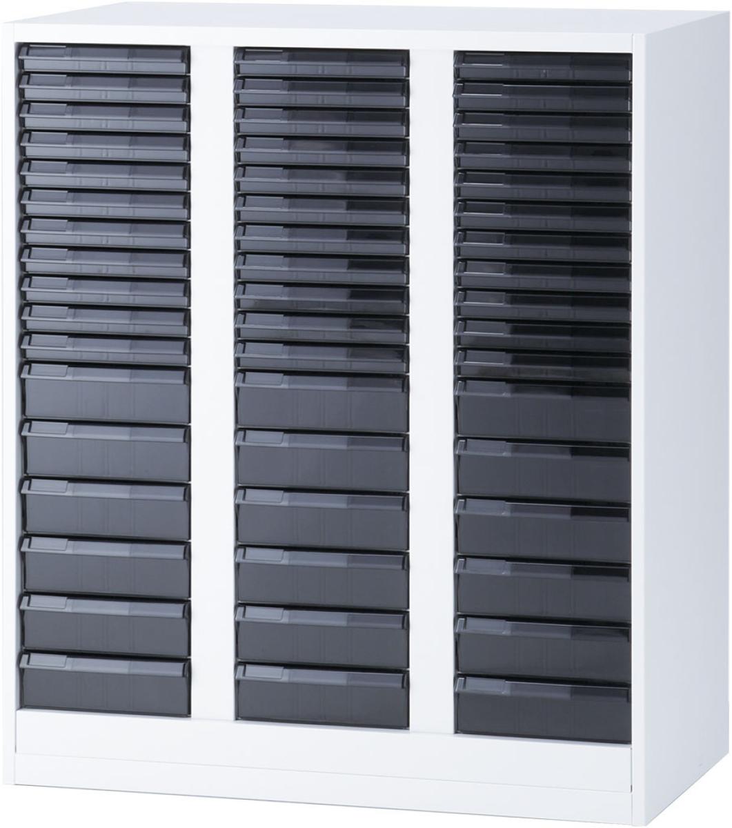 【書類・備品整理の必需品!】【珍しいクリトレが入荷!3列×浅型11段+深型6段】■ウチダ(UCHIDA)製 BEストレージシリーズ クリスタルトレー ローキャビネット ■3列×浅型11段+深型6段 ■色:ホワイト/トレイ:ブラック
