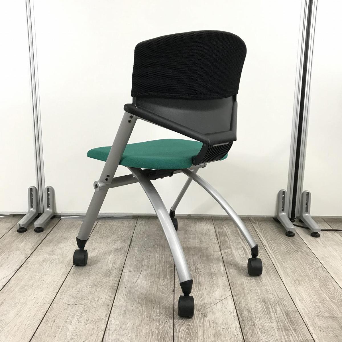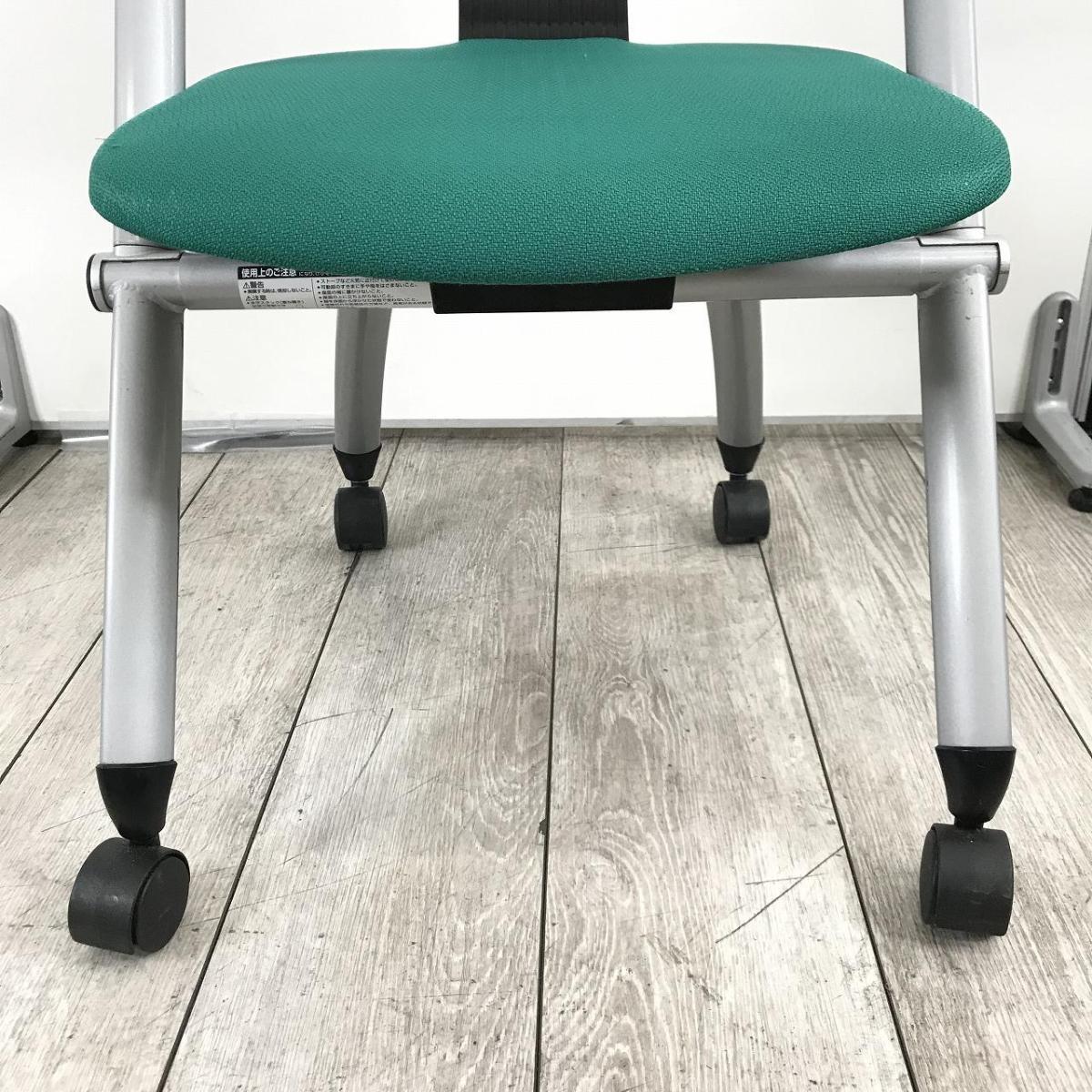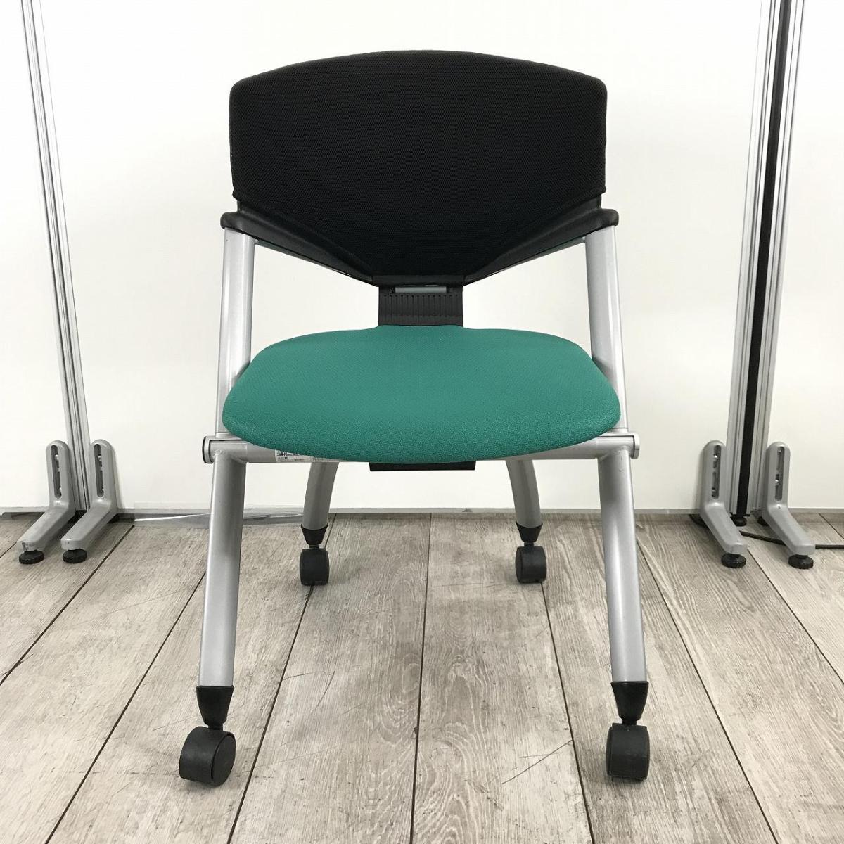会議室や商談スペースに!キャスター付きで移動らくらく! ■コクヨ/コルサ(corsa)/座面グリーン・背面ブラック ミーティングチェア ネスティング- 立川・八王子店