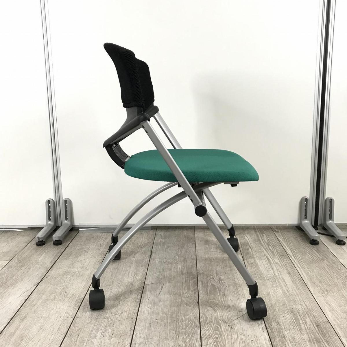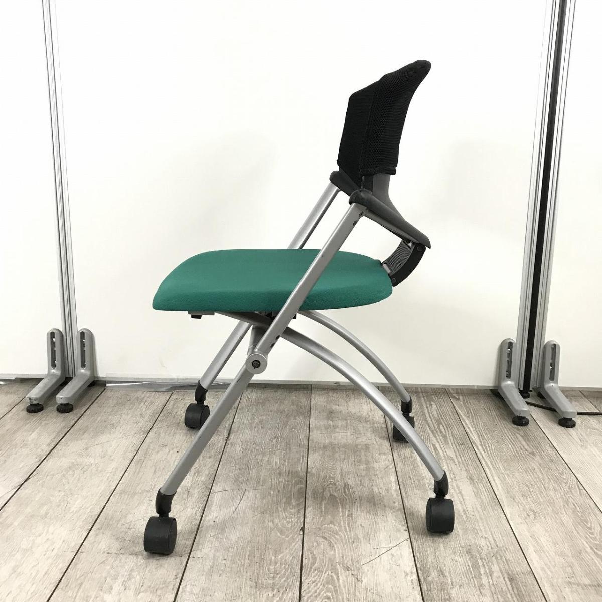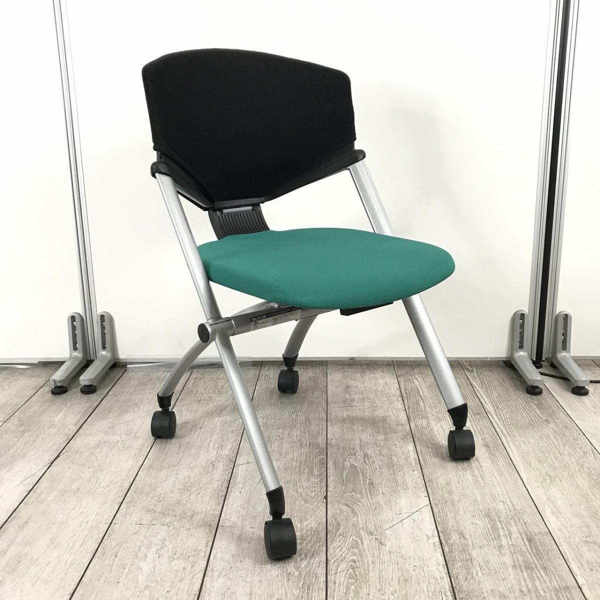 会議室や商談スペースに!キャスター付きで移動らくらく! ■コクヨ/コルサ(corsa)/座面グリーン・背面ブラック ミーティングチェア ネスティング- 立川・八王子店
