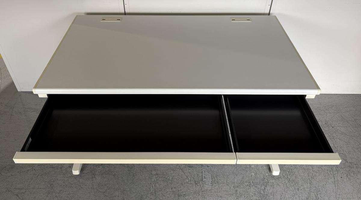 【定番横幅1200サイズ!】■オカムラ(okamura)製 平机(平デスク) ヴィラージュデスク (VILLAGE)シリーズ ■ホワイト ■引出し付 ■配線口2カ所【2501】弊社使用欄【A00993476】