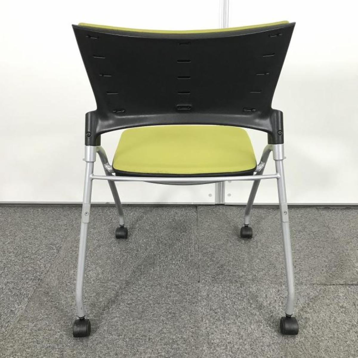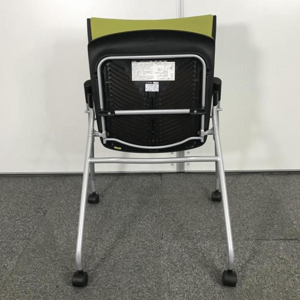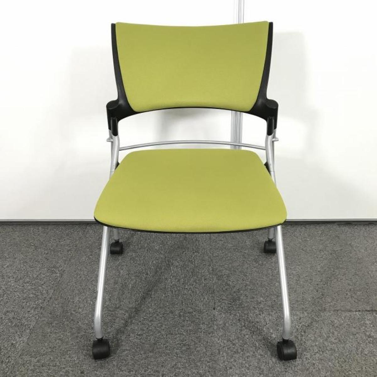 【在庫入替セール】【4脚限定】【平行ネスティングで省スペース化!】■イトーキ(ITOKI)製 マノスチェア(MANOSS)肘無 ネスティングチェア ミーティングチェア ■背パッド キャスター付 ■アイビーグリーン×ブラックシェル