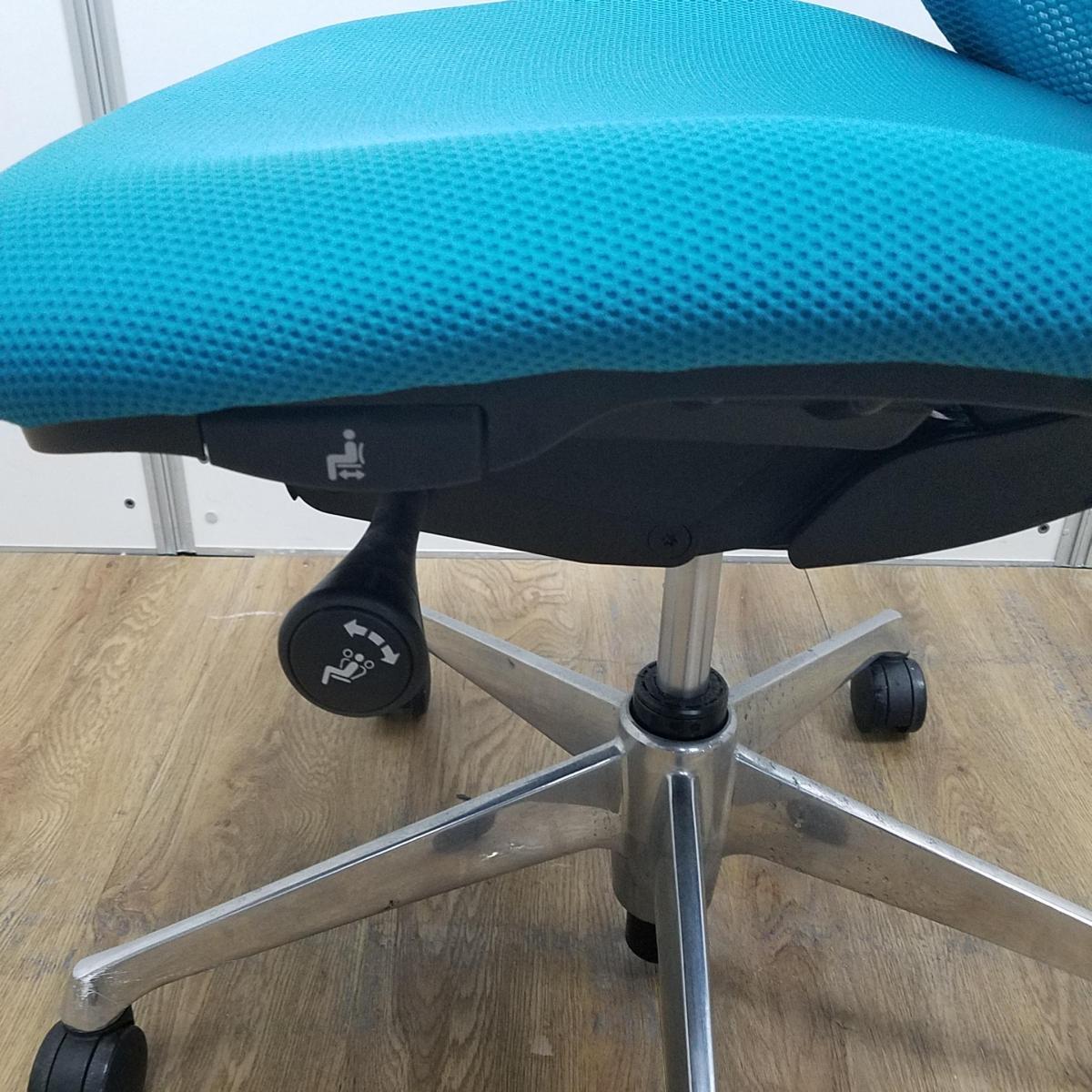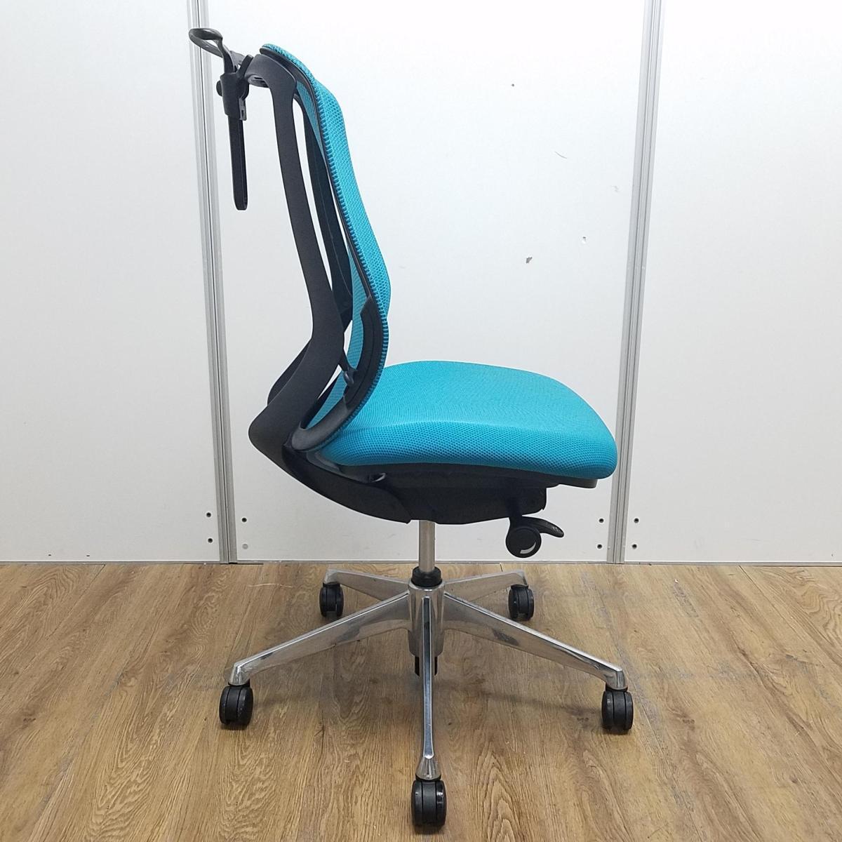 オカムラ製 シルフィシリーズ ブルーグリーン 背面メッシュ ブラックフレーム ハンガー付 オフィス家具 リモートワーク 前傾チルト機能が秀逸!オカムラ製品で最も人気を集める高機能メッシュチェア 肘無しハイバックチェア!!【個】- 大阪・堺店