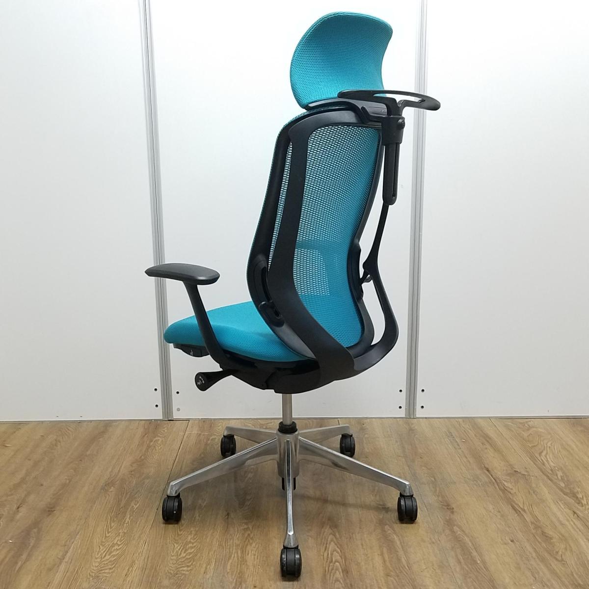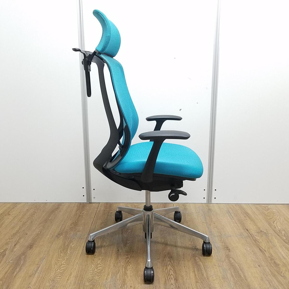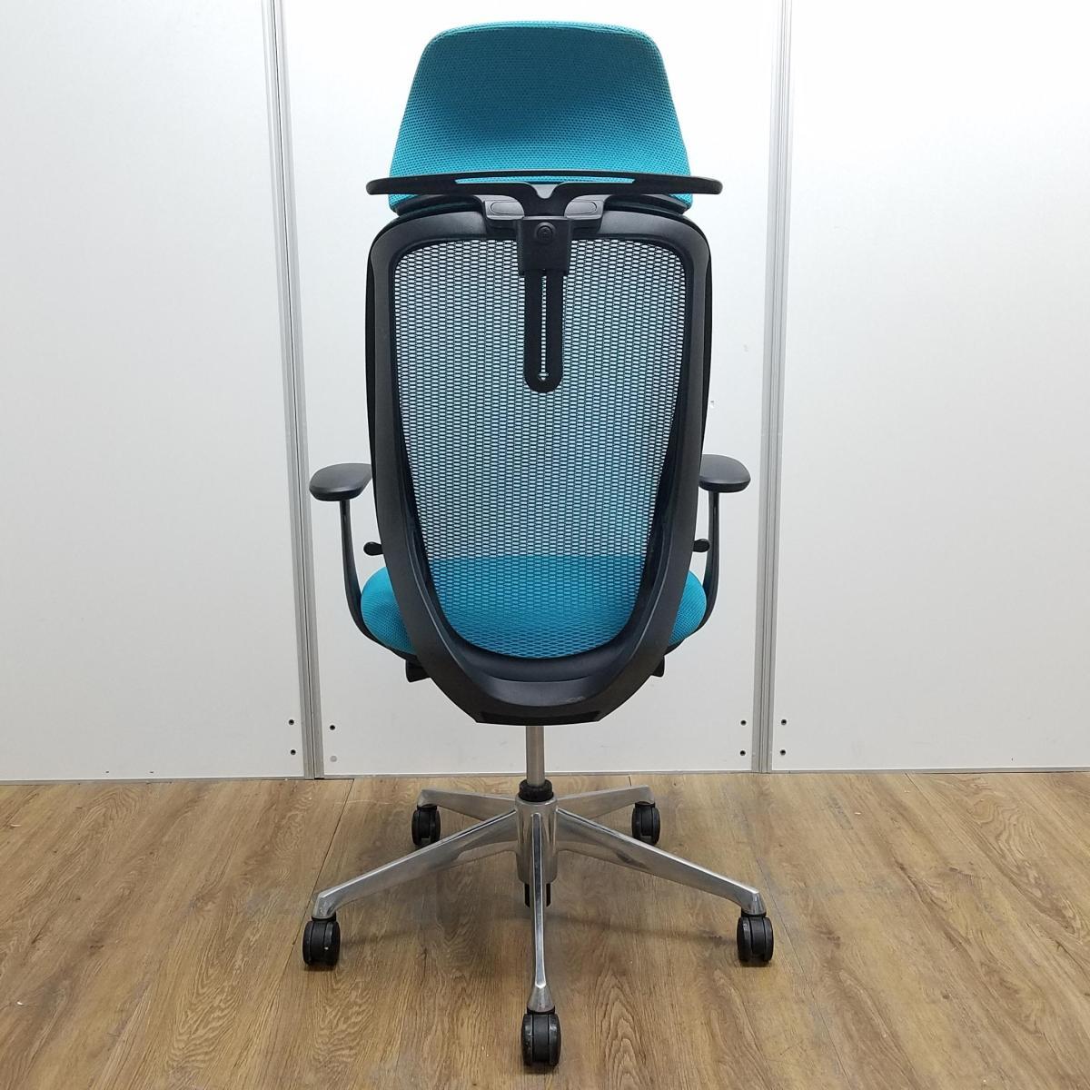 オカムラ製 シルフィーシリーズ ブルーグリーン コートハンガー ヘッドレスト ポリッシュ脚 アジャストアーム※可動肘 肘付きハイバックチチェア!!- 大阪・堺店