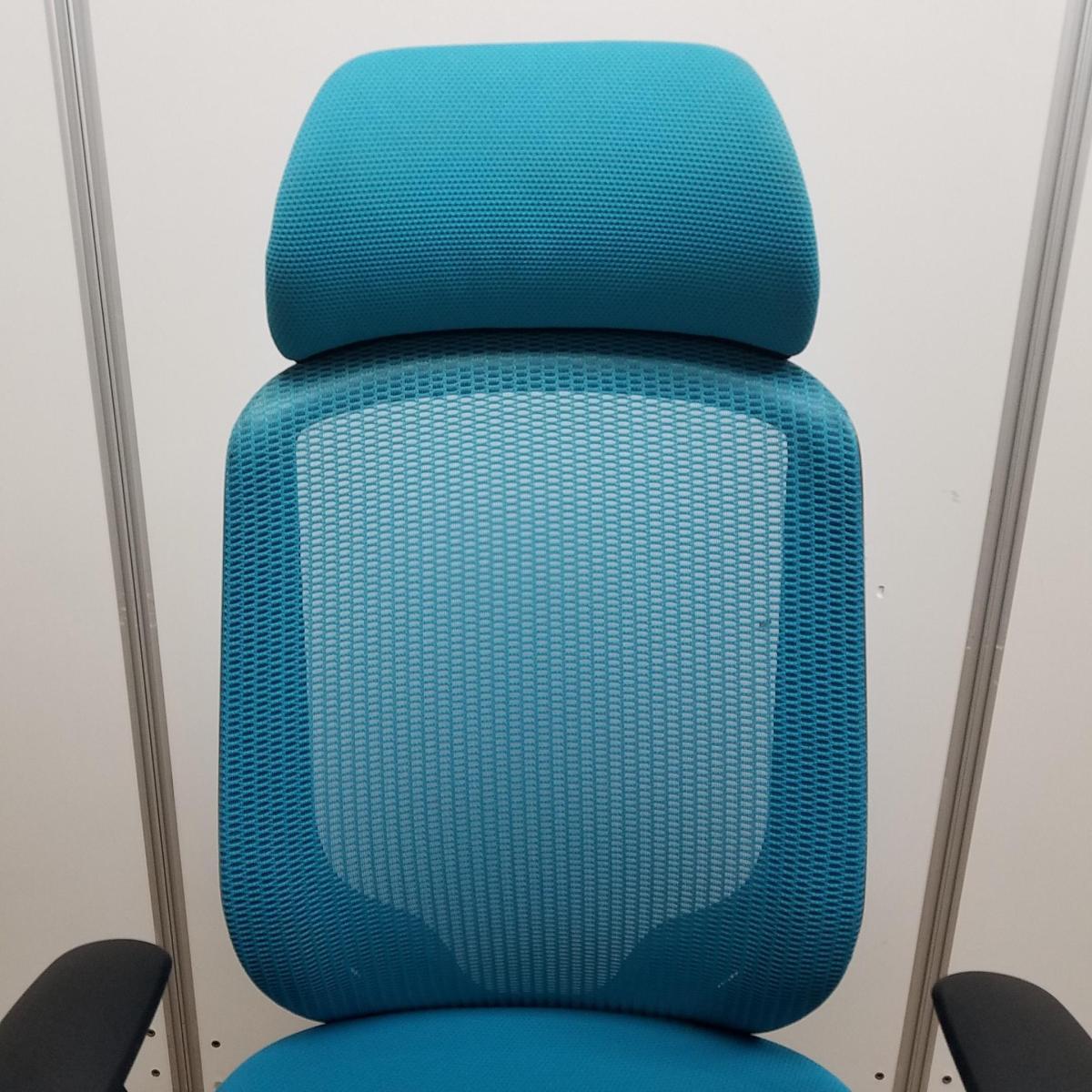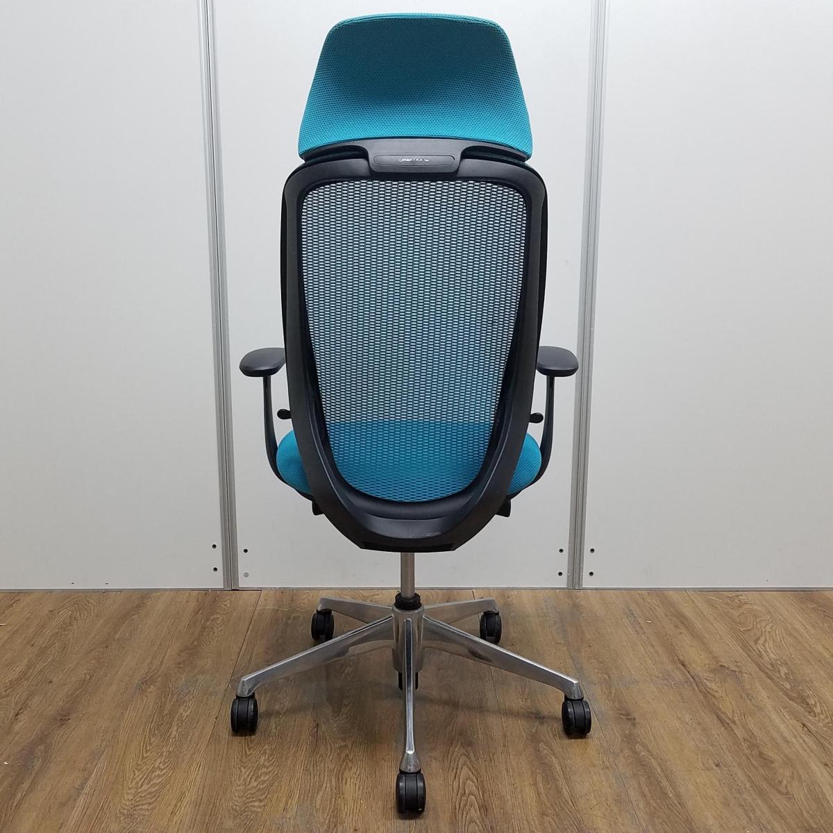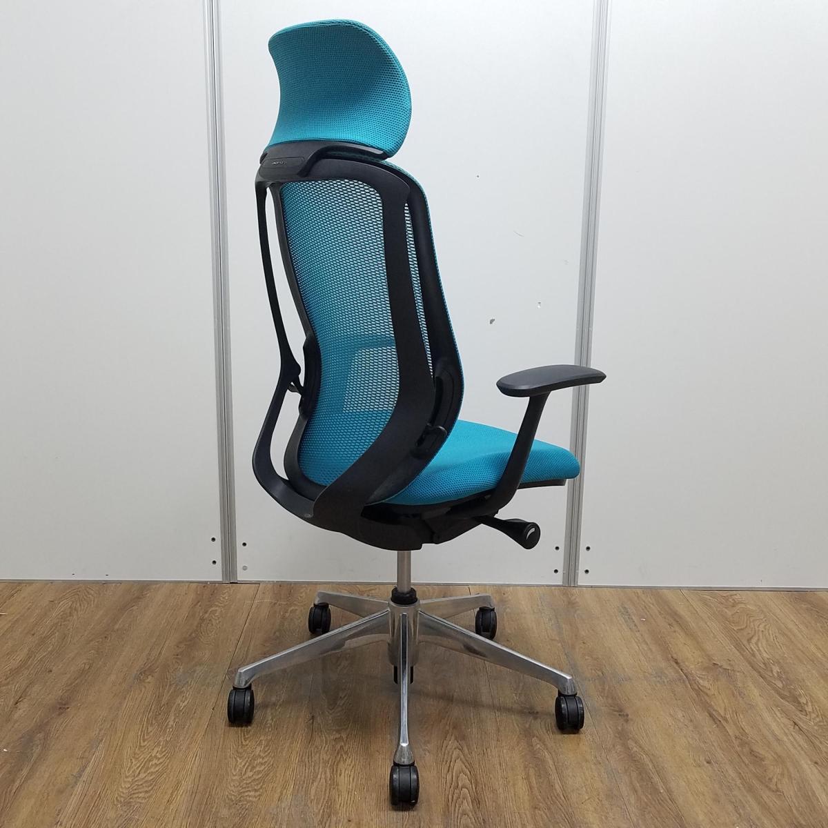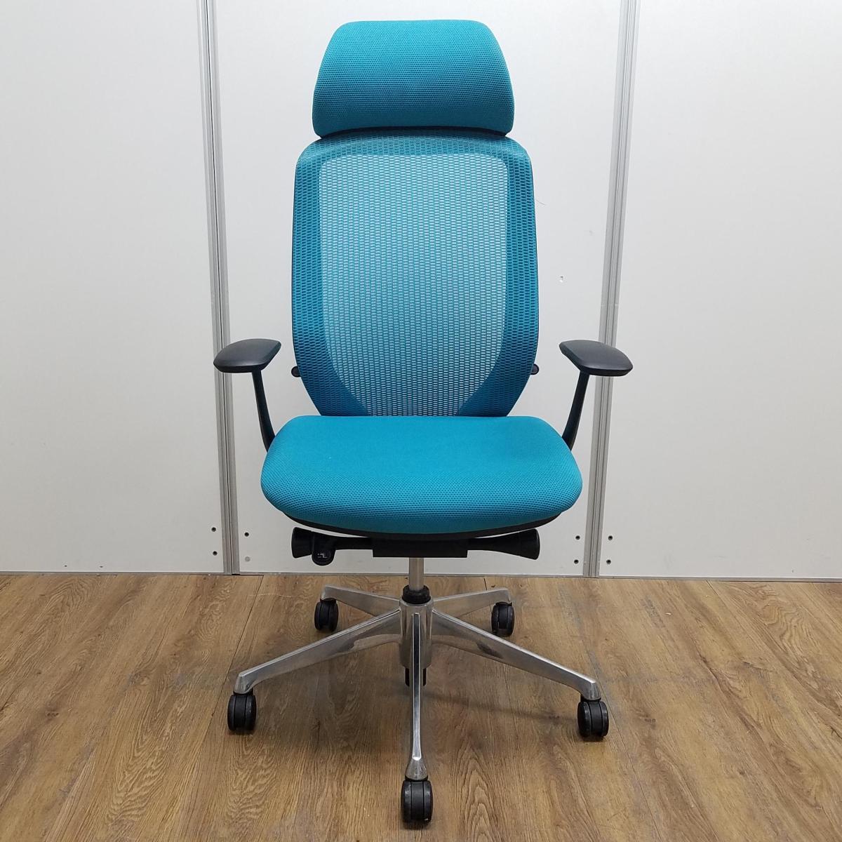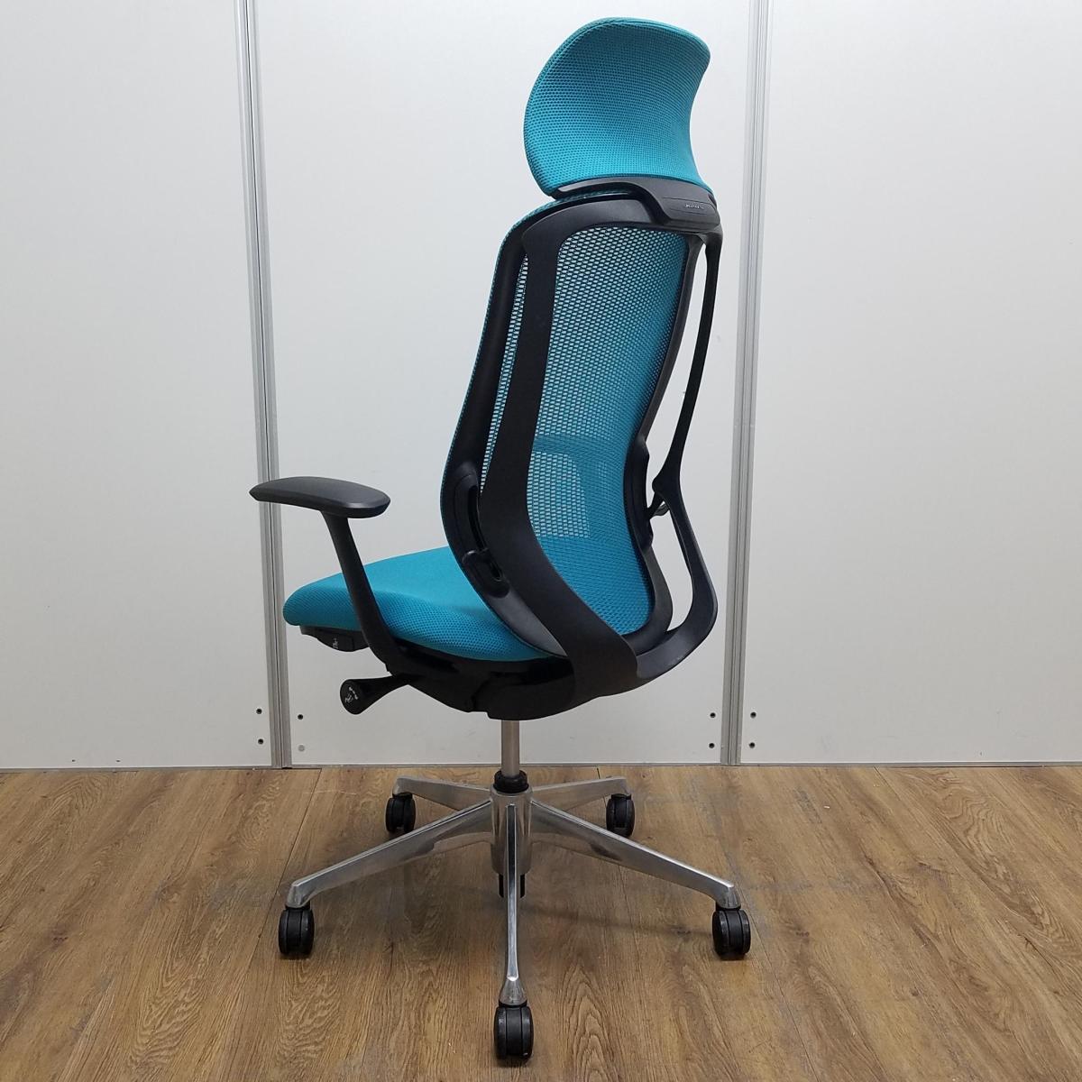 オカムラ製 シルフィーシリーズ ブルーグリーン ヘッドレスト ポリッシュ脚 デザインアーム※固定肘 肘付きハイバックチチェア!!- 大阪・堺店