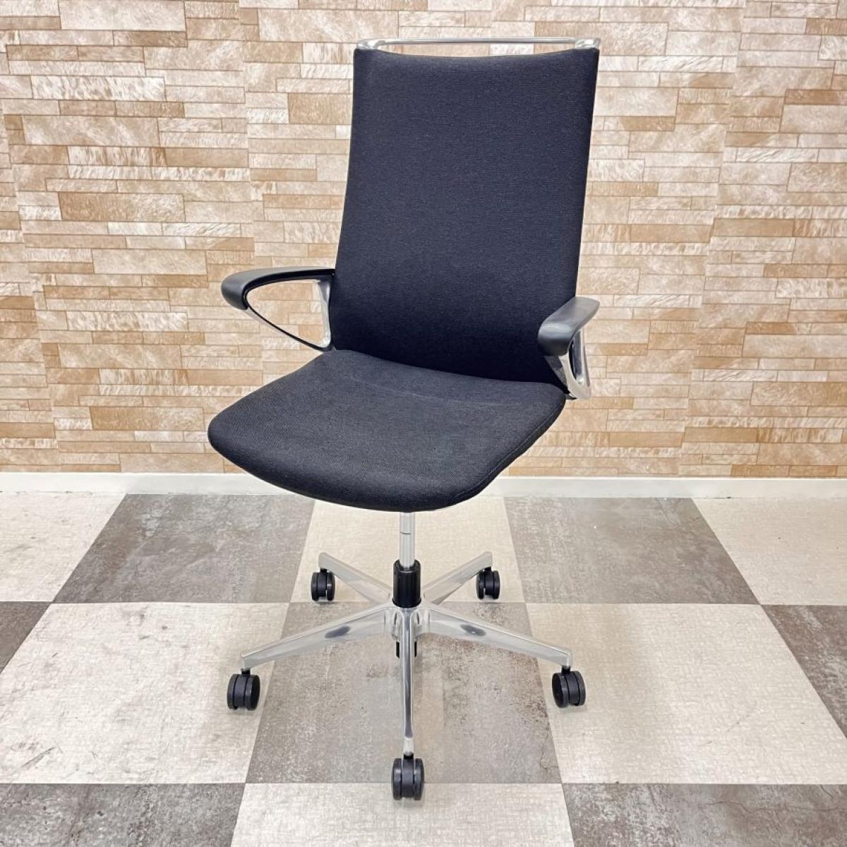 【6脚!おしゃれチェア入荷しました。】オカムラ製 モードシリーズ ブラックカラー クロス仕様 固定肘 機能とデザインが融合~会議室やモダンなオフィスの執務用としてもオススメ 肘付ハイバックチェア!!- 大阪・堺店