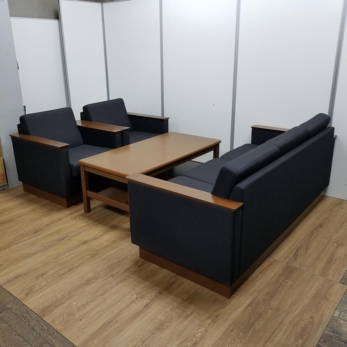 コクヨ製 サンタフェ4/ NTシリーズ ブラック 3人掛け/1人掛け/センターテーブル 応接セット!!- 京都東寺店