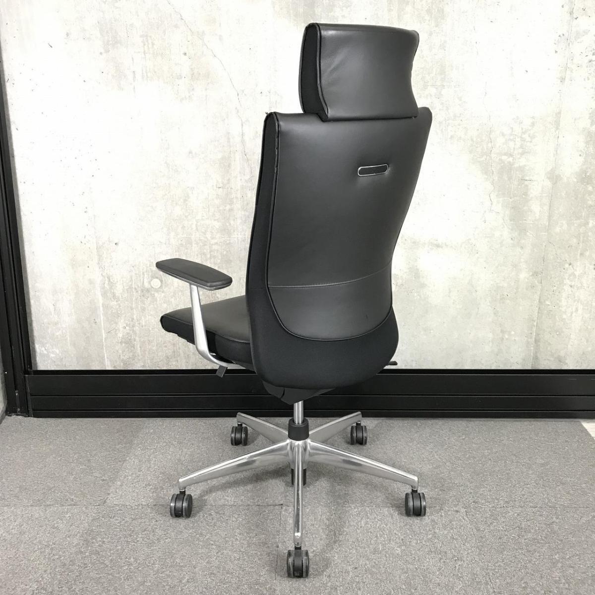 【レザータイプなので上長席・役員用に最適!】■コクヨ(KOKUYO) プントチェア(PUNTO) ハイバック 肘付き ■革張りモデル 固定肘 ■エアランバーサポート ■ヘッドレスト付き- つくば店