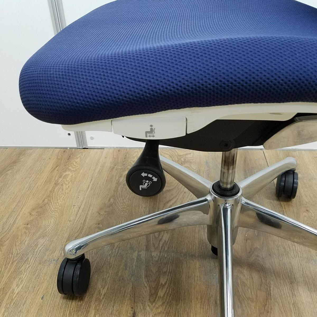 【前傾チルト付!流れるような美しいフォルムの最高級メッシュチェア!】■オカムラ(okamura)製 Sabrina(サブリナ) ハイバック 肘付き ■可動肘 ■背面メッシュ:アクアブルー 座面:ブルー ホワイトフレーム