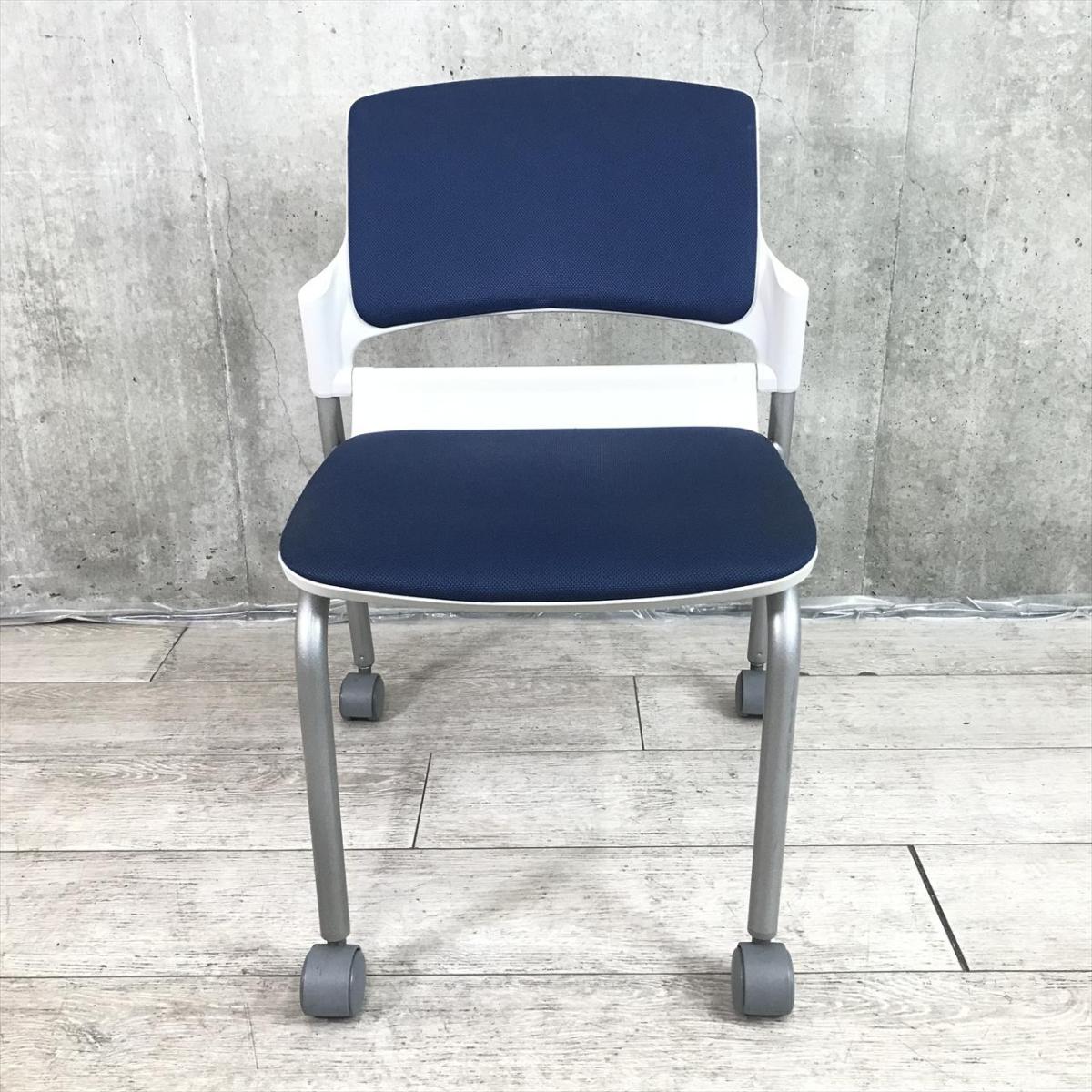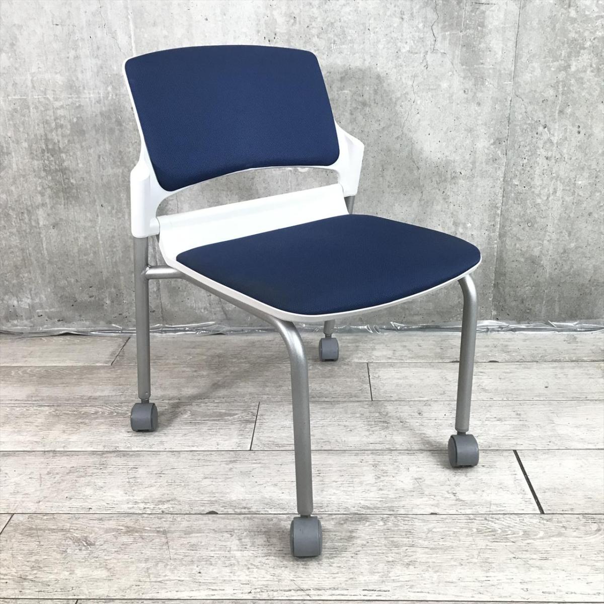 【キャスター付きで使いやすい!ミーティングに最適!】■ウチダ(UCHIDA)製 MF-180シリーズ スタッキングチェア ミーティングチェア ■キャスター付き ■ブルー×ホワイトシェル【2509】弊社使用欄【A01032801】
