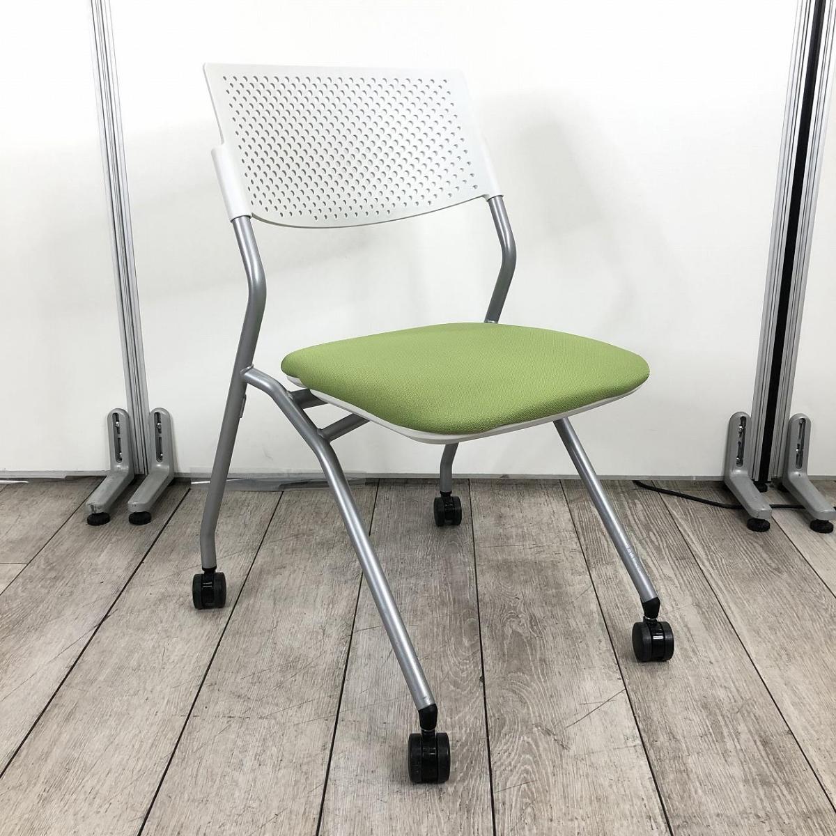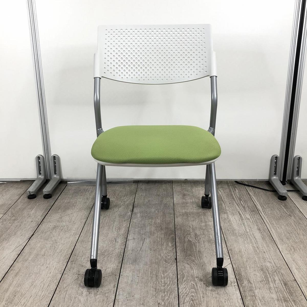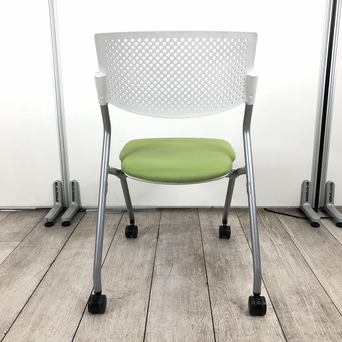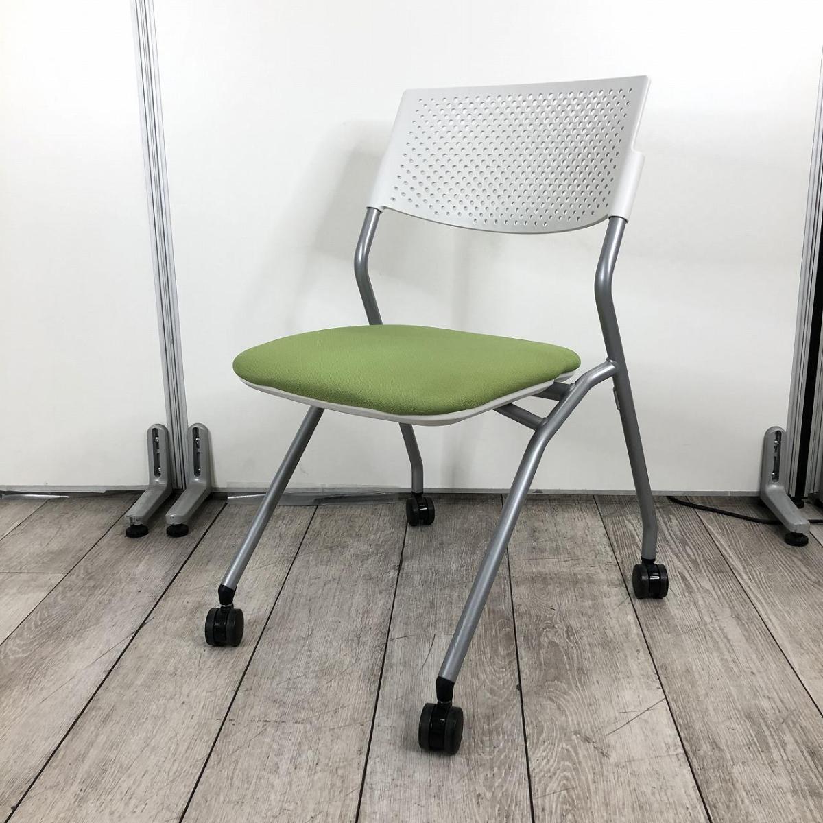 【スタイリッシュなネスティングチェア!シンプルデザインで様々なミーティングシーンにぴったりフィット!】■ウチダ(UCHIDA)製 FM265シリーズ ネスティングチェア ■座面:グリーン×背面:ホワイト樹脂メッシュ ■キャスター付【AD】- 在庫数