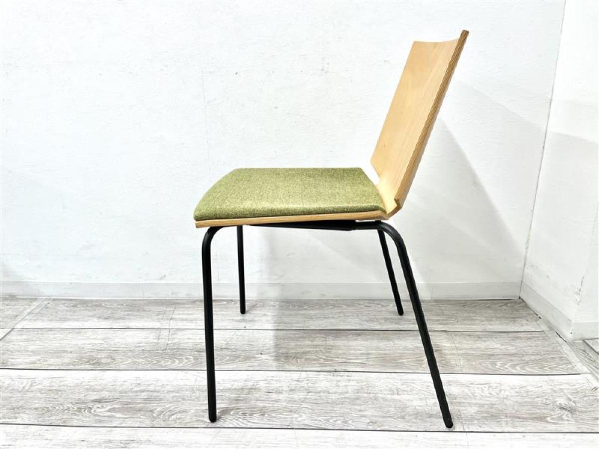 【在庫セール品】【定価約5万円】【オフィスのカフェ化やリフレッシュスペースに最適!オシャレなデザインのスタッキングチェア!】■ウチダ製 Hazel スタッキングチェア ■座面グリーン×背面木目ナチュラル×ブラック脚- 仙台店