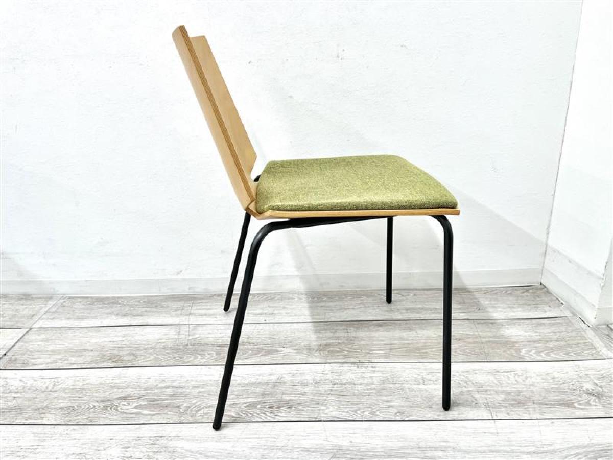 【在庫セール品】【定価約5万円】【オフィスのカフェ化やリフレッシュスペースに最適!オシャレなデザインのスタッキングチェア!】■ウチダ製 Hazel スタッキングチェア ■座面グリーン×背面木目ナチュラル×ブラック脚- 在庫数
