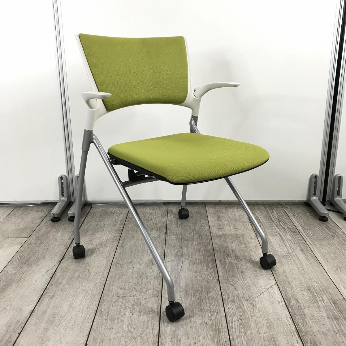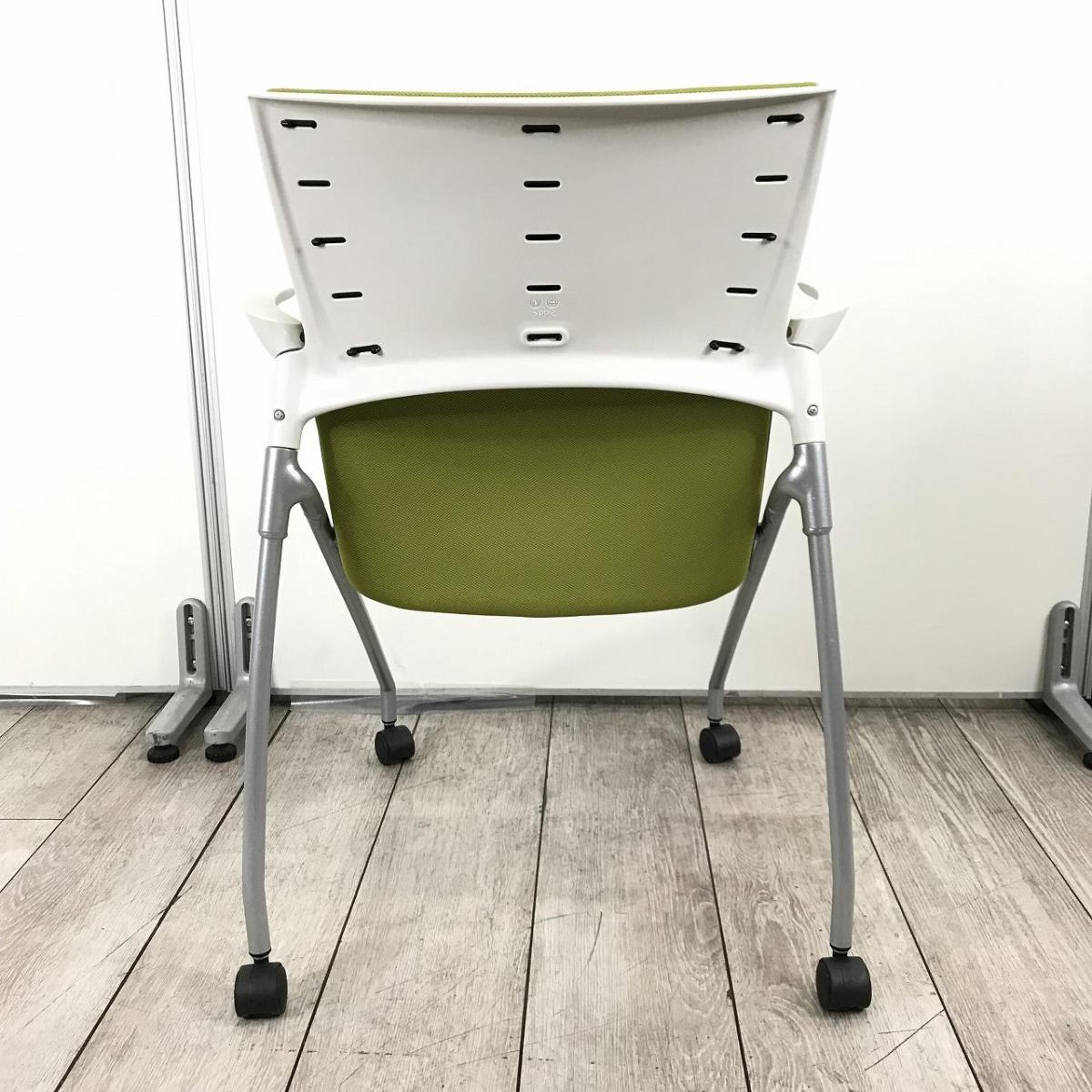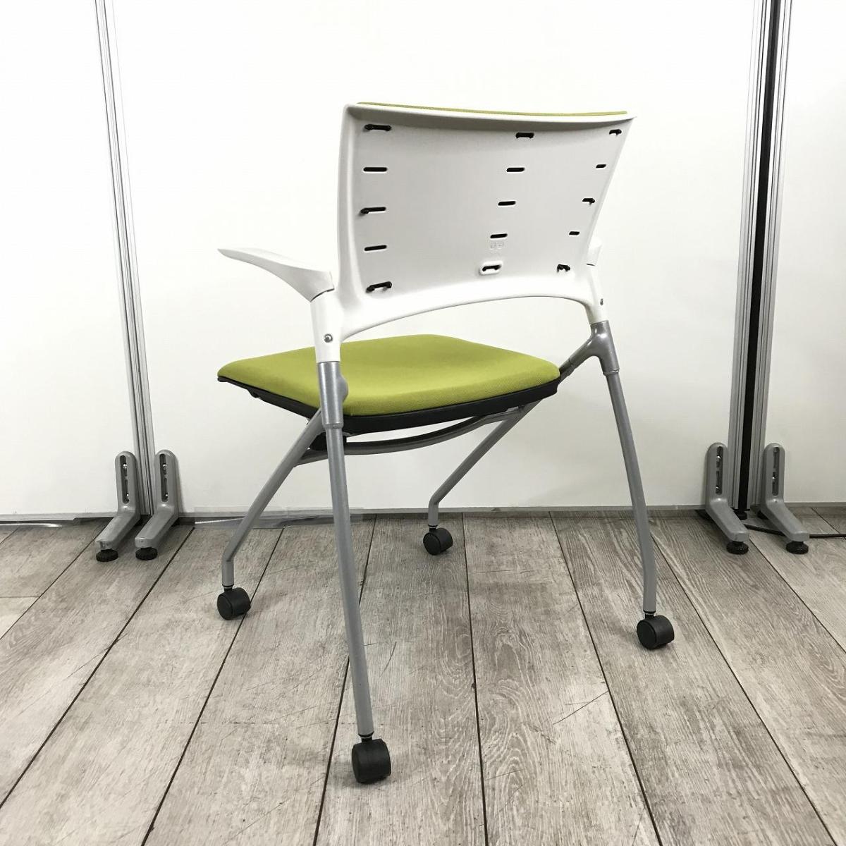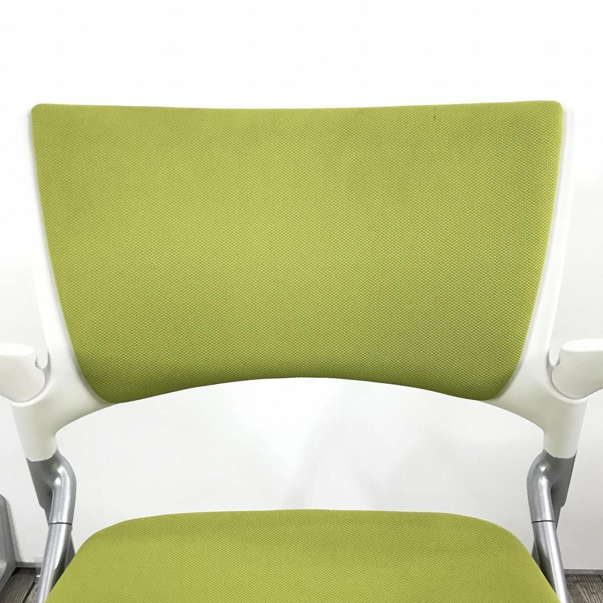 明るい会議室を!雰囲気を上げる快適な肘付ミーティングチェア!ホワイトフレーム×グリーンカラー! ■イトーキ/マノス/モスグリーン ネスティングチェア- 立川・八王子店