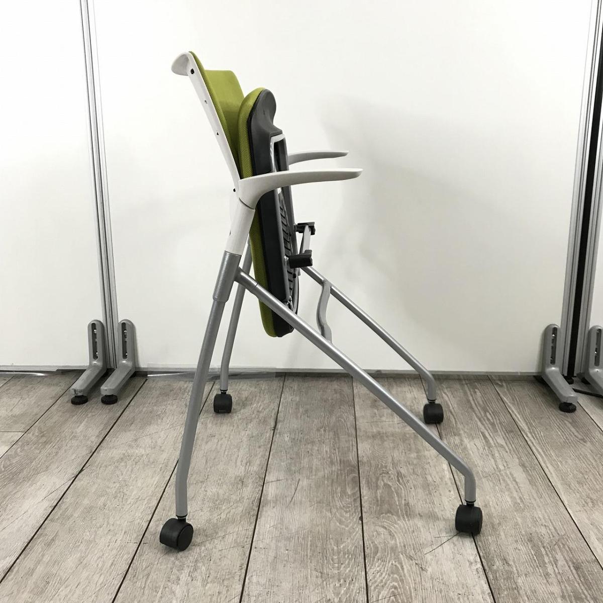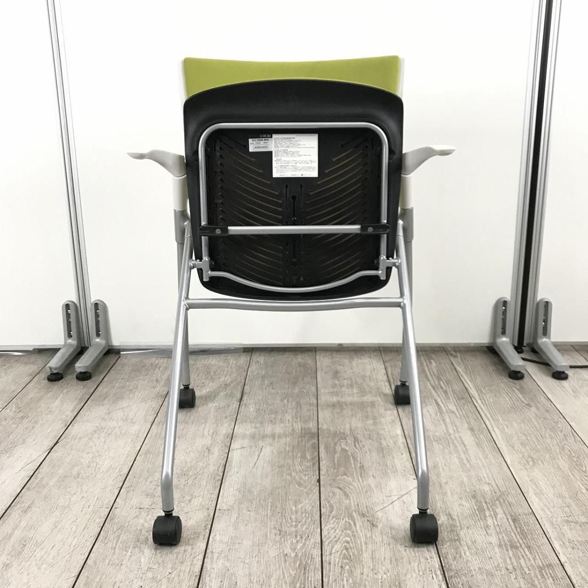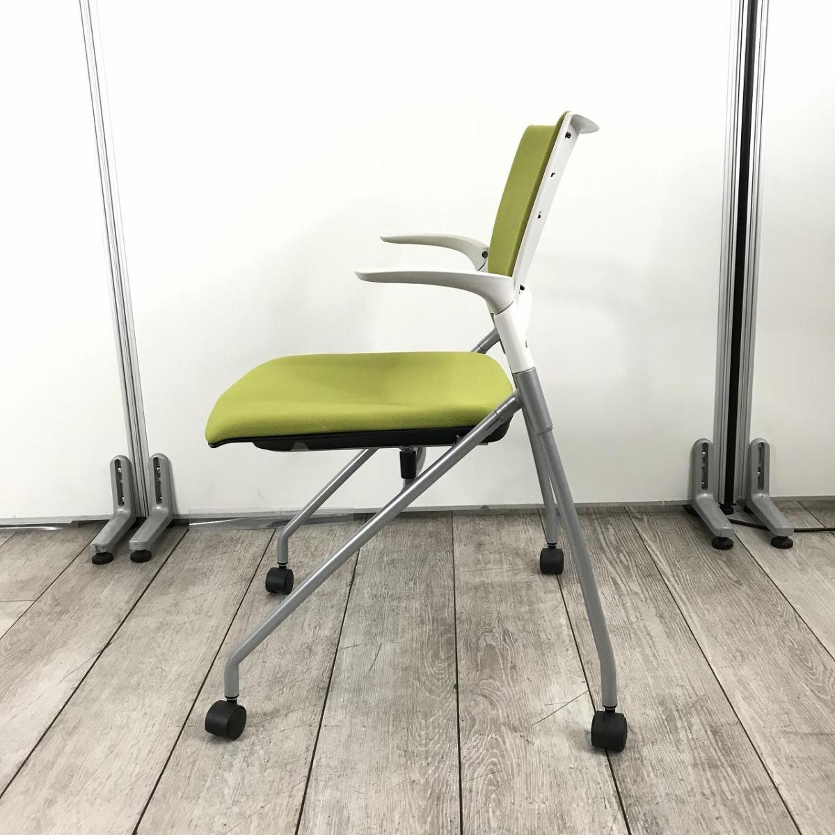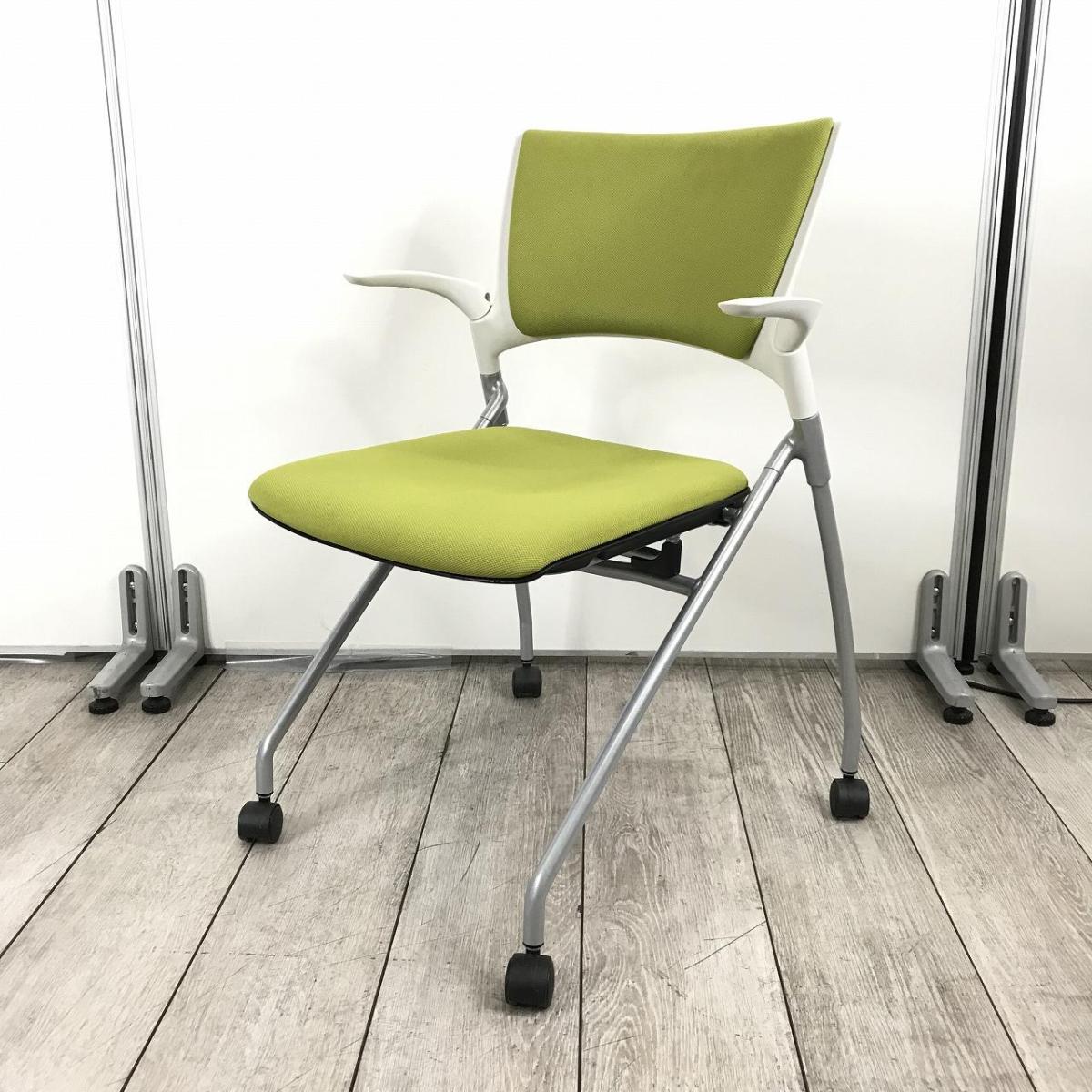 明るい会議室を!雰囲気を上げる快適な肘付ミーティングチェア!ホワイトフレーム×グリーンカラー! ■イトーキ/マノス/モスグリーン ネスティングチェア- 立川・八王子店