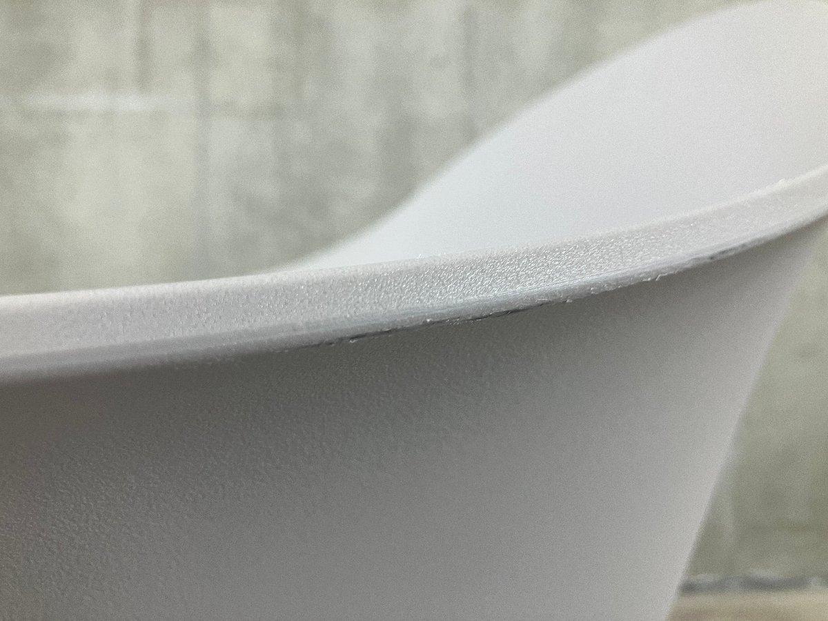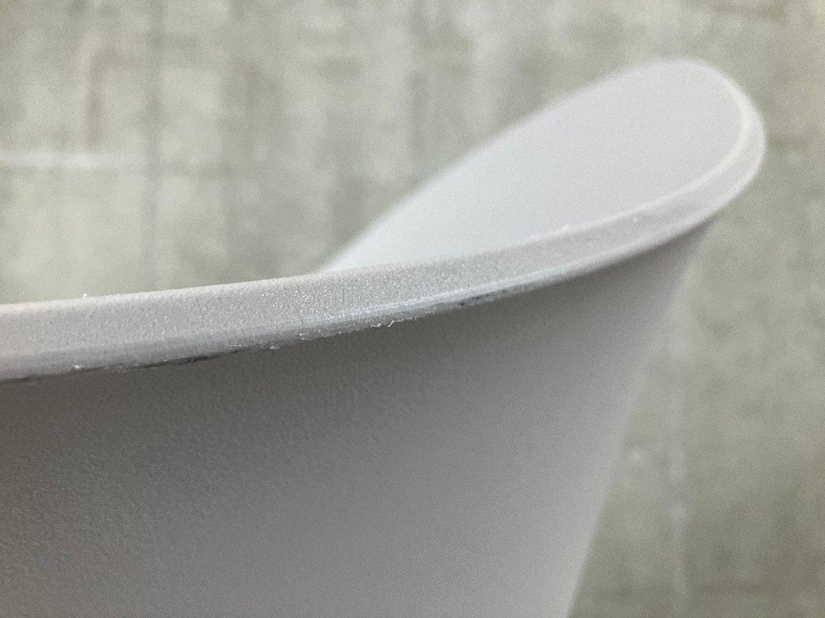 - かなり強い濃い黄ばみ・変色が商品全体にある。(例、座面・背もたれ、脚部等にある。)