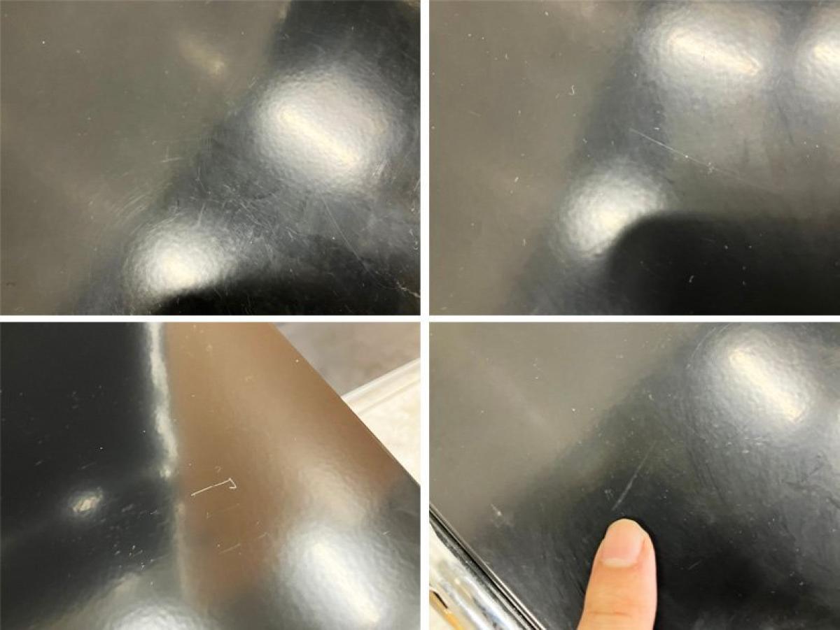 - 目立つ箇所あり傷・凹みが多数、深い傷・凹みが一部ある。(例、天板、正面、背部、サイド部分にある。)