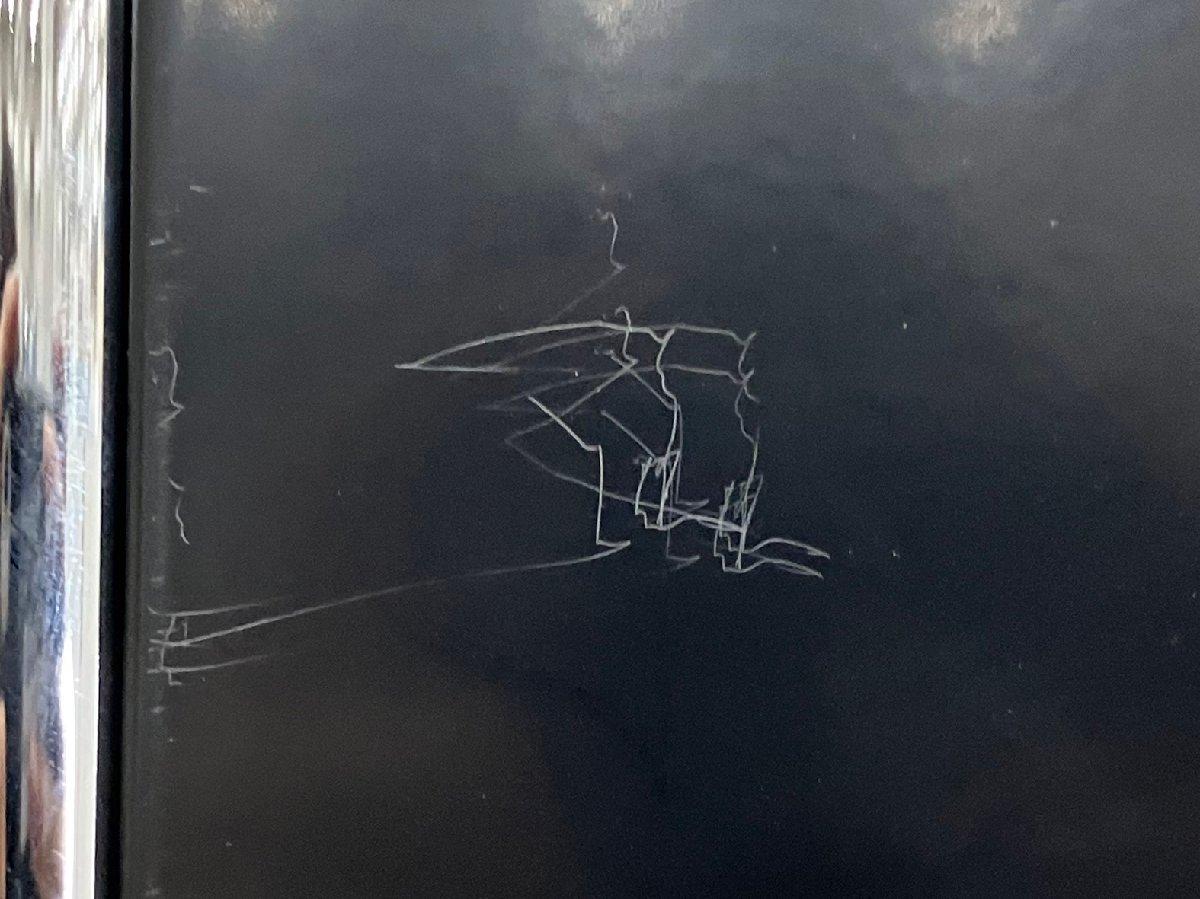 - 目立つ箇所あり傷・凹みが多数、深い傷・凹みが一部ある。(例、天板、正面、背部、サイド部分にある。)