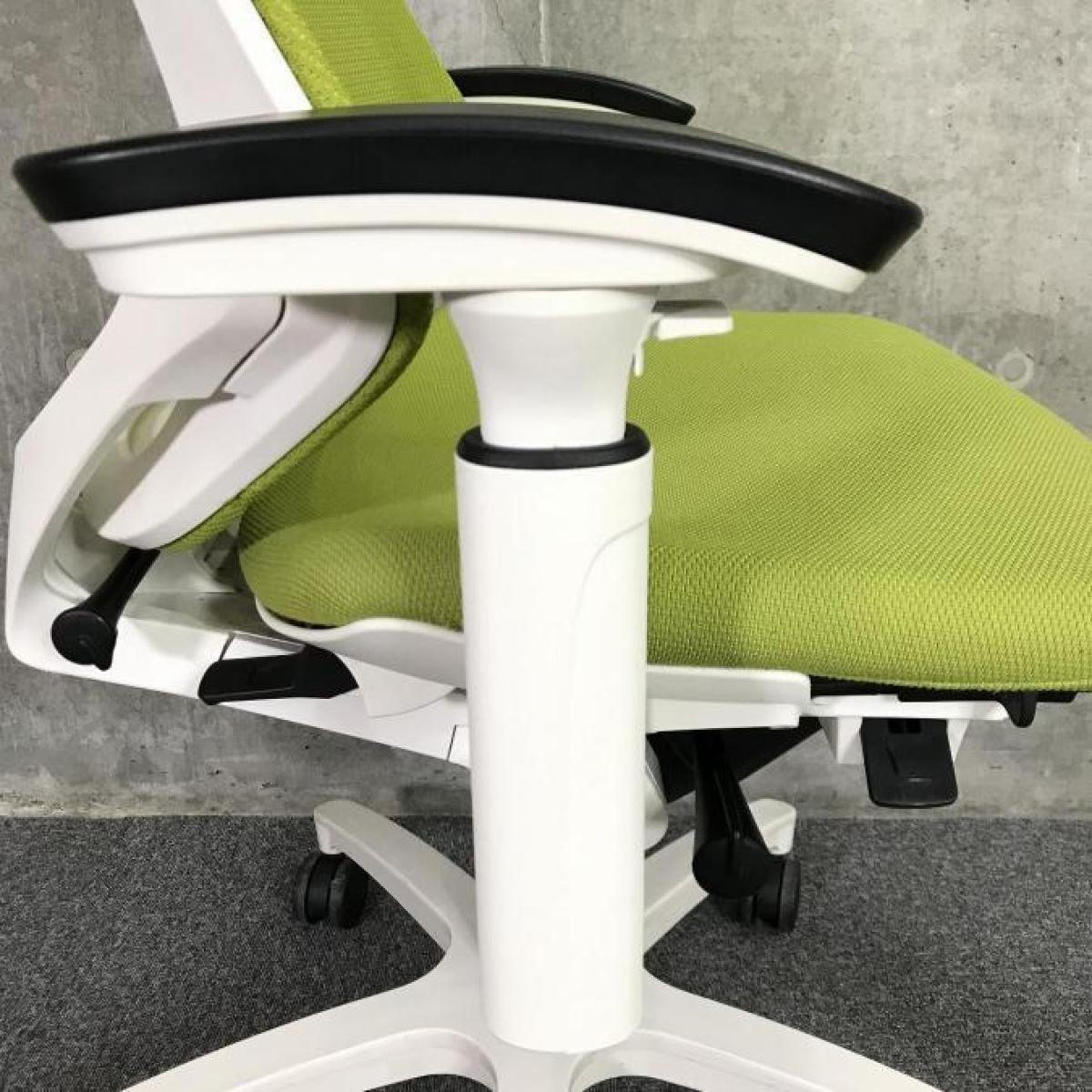【腰部の広範囲をソフトにホールドして圧力を分散!スタイリッシュなデザインのメッシュチェア!】■イトーキ製 エフチェア ハイバック 肘付き ■可動肘 ■メッシュバック ■グリーン× ホワイトシェル ■ハンガー付- 岐阜店