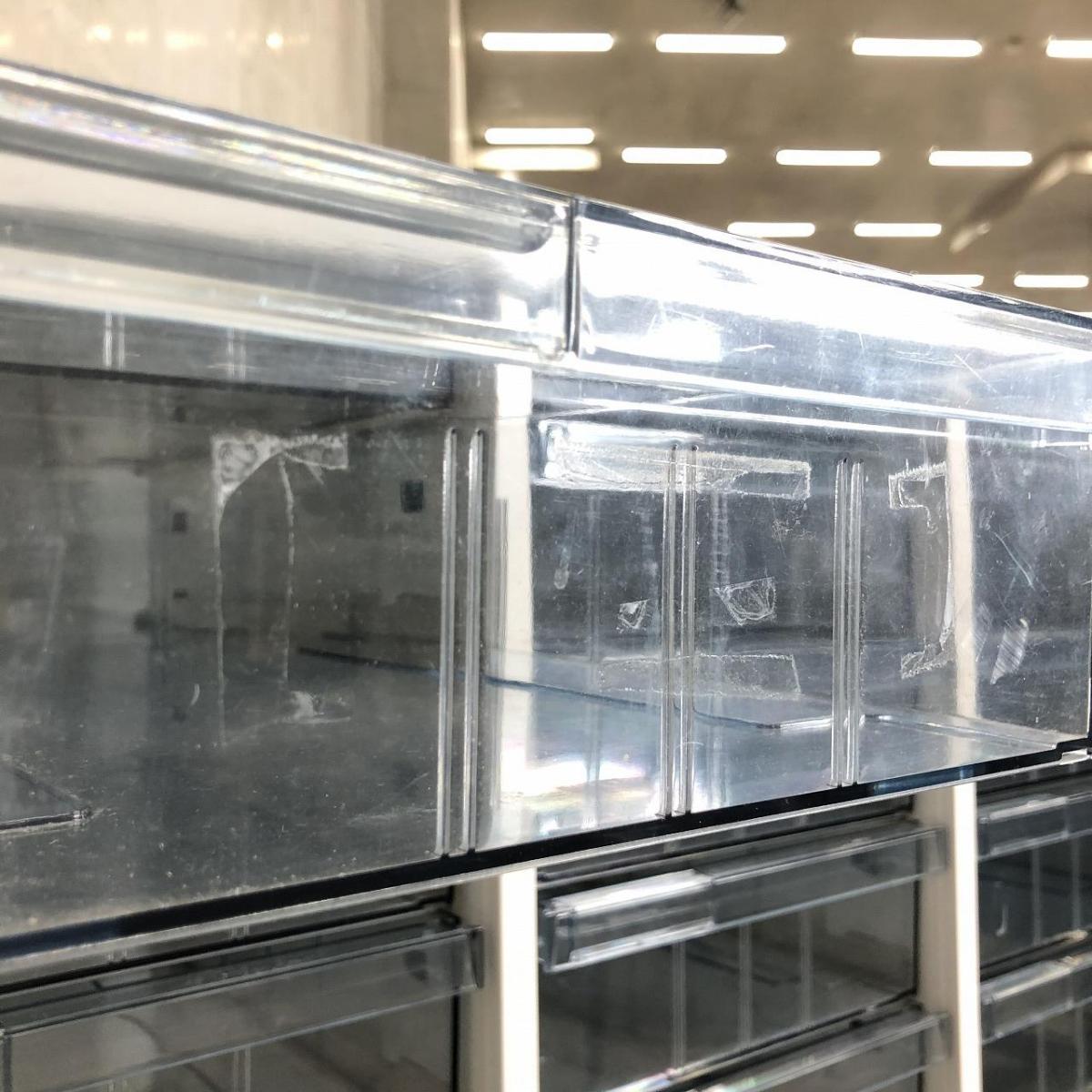 【書類・備品整理の必需品!書類や備品のストックにピッタリ!※1段目のみ浅型仕様】オカムラ レクトライン クリスタルトレー 書類 引き出し 透明 ケース ローキャビネット 整理 中古家具 オフィス家具 福岡 九州最大級《オフィスバスターズ福岡博多店は、福岡を拠点として、日本全国へ中古オフィス用品・オフィス家具を提供しております》
