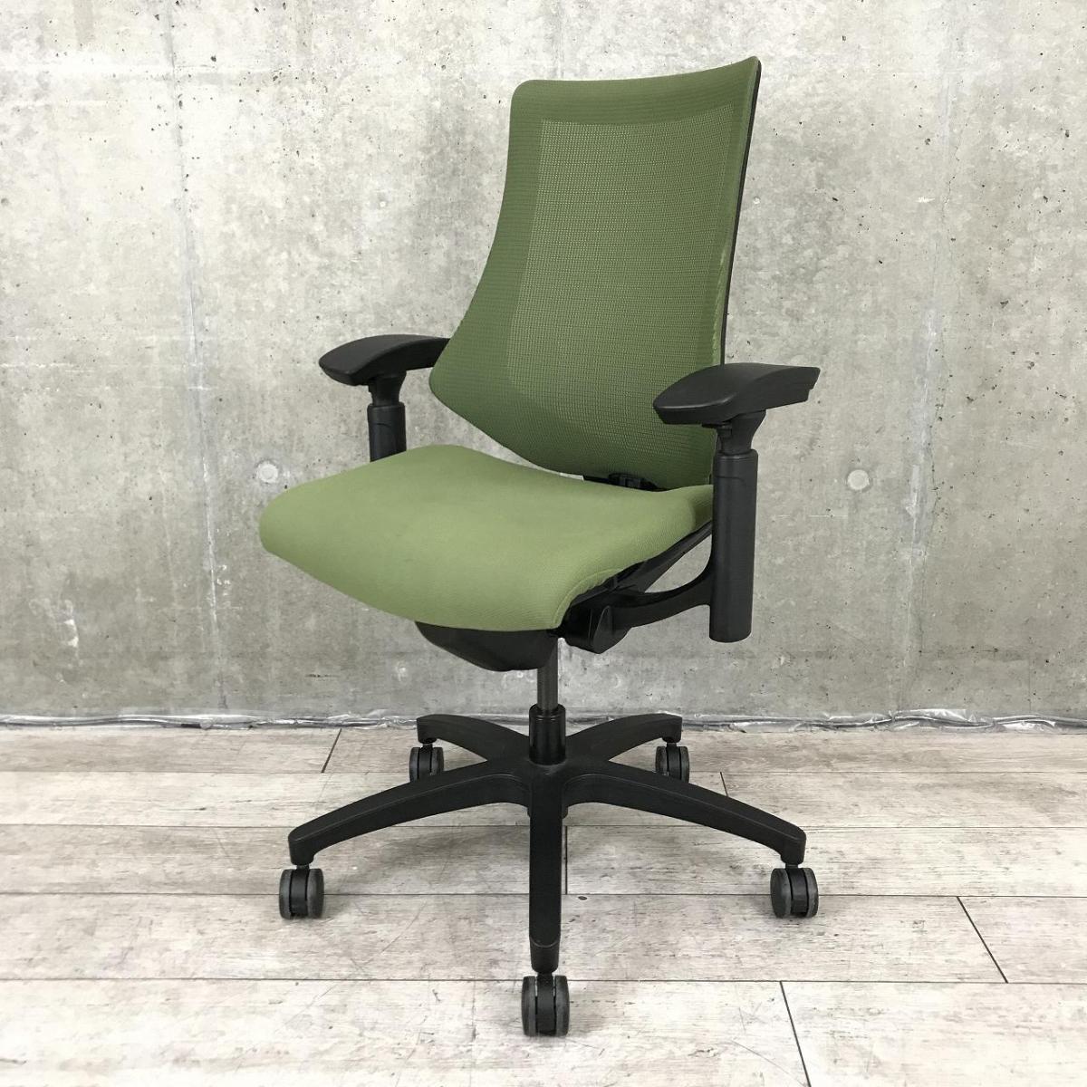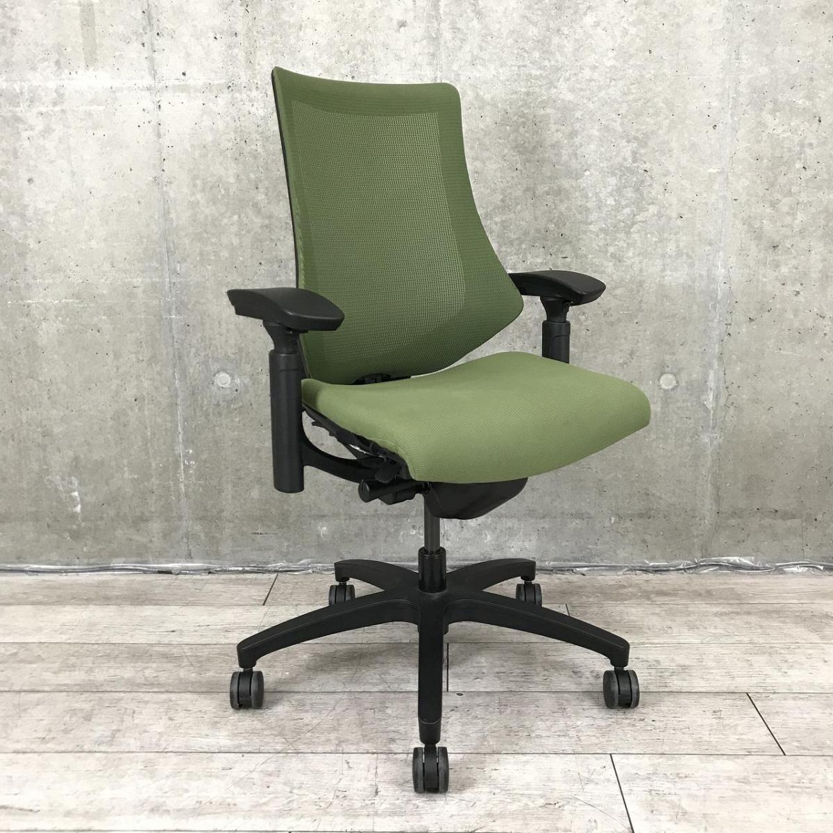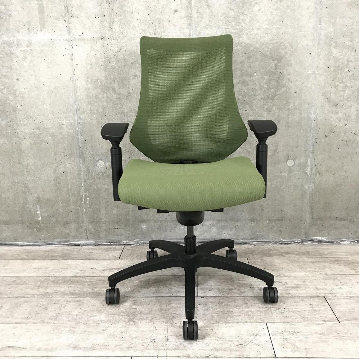 【メッシュ背面の快適OAチェアが入荷です! 背もたれの大きなハイバックタイプ! 姿勢の変化にフレキシブルに対応!】■イトーキ(ITOKI) ■エフ(f)チェア ■ハイバック ■メッシュ背面 ■可動肘付き ■グリーン【状態良好品!】