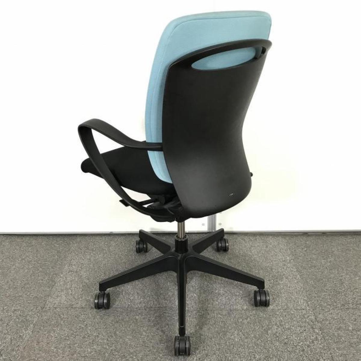 【「汚れにくさ」から生まれたスタイリッシュデザインのOAチェア】【シンプルデザインで機能は充実】■ITOKI(イトーキ)製 fulgo(フルゴ)チェア 肘付き ローバック ■サークル肘 ■背面:ターコイズブルー/座面:ブラック- なんば日本橋店