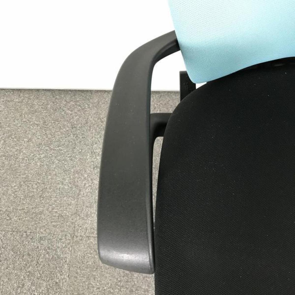 【背もたれ・座面使用感のすれあり】イトーキ製 人気高いフルゴシリーズ ブラック×ネイビーブルー 肘付きローバックチェア!!【関西倉庫在庫】